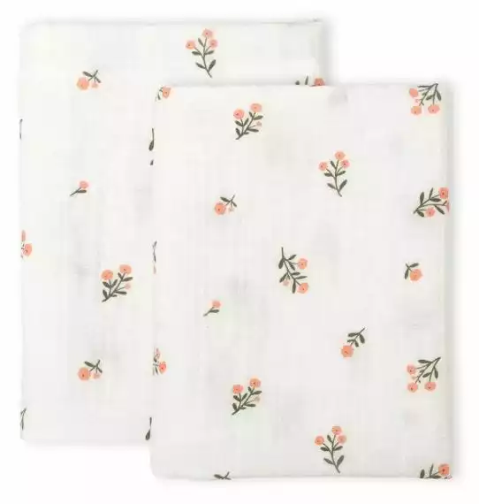 Set of two multi-purpose muslin cloths. Made from 100% organic cotton, these soft cloths are a must-have item for every new parent. Cotton muslin is lightweight, absorbent, and breathable, making it ideal to use as during feeding, cleaning, and bathing. These clothes are also the perfect size for on the go.