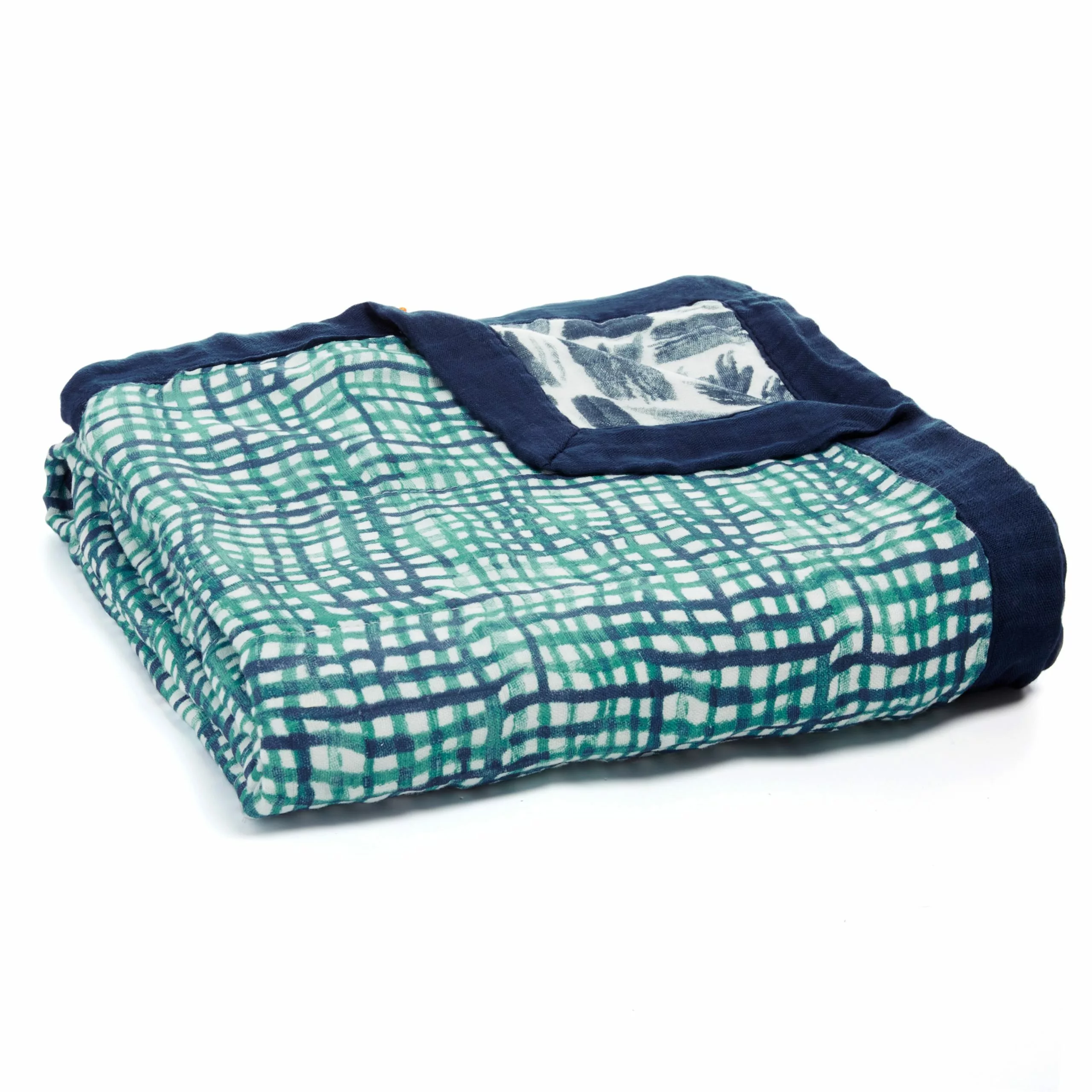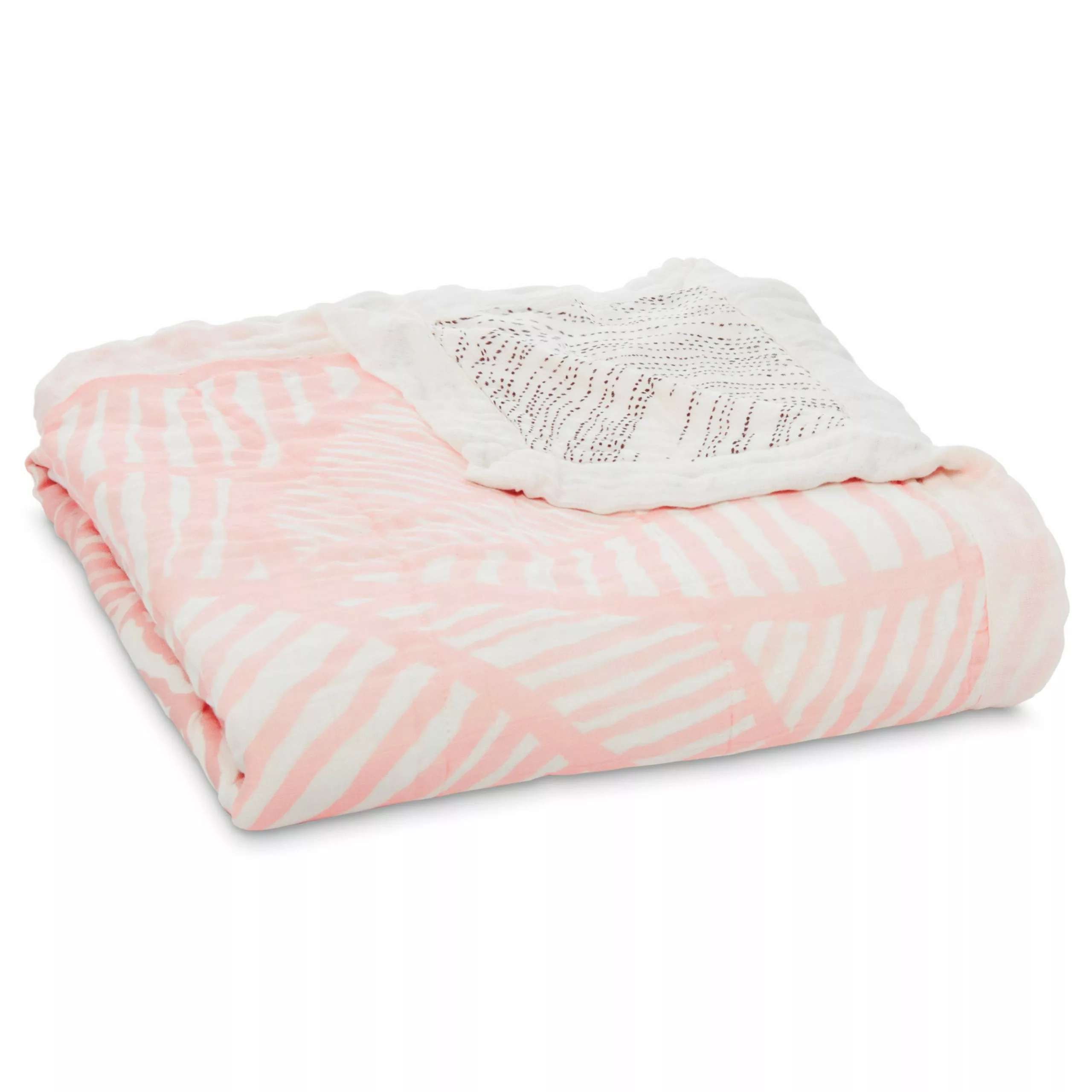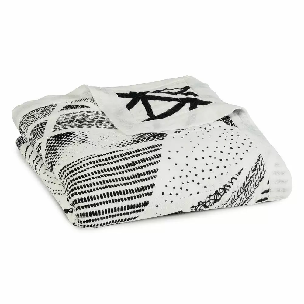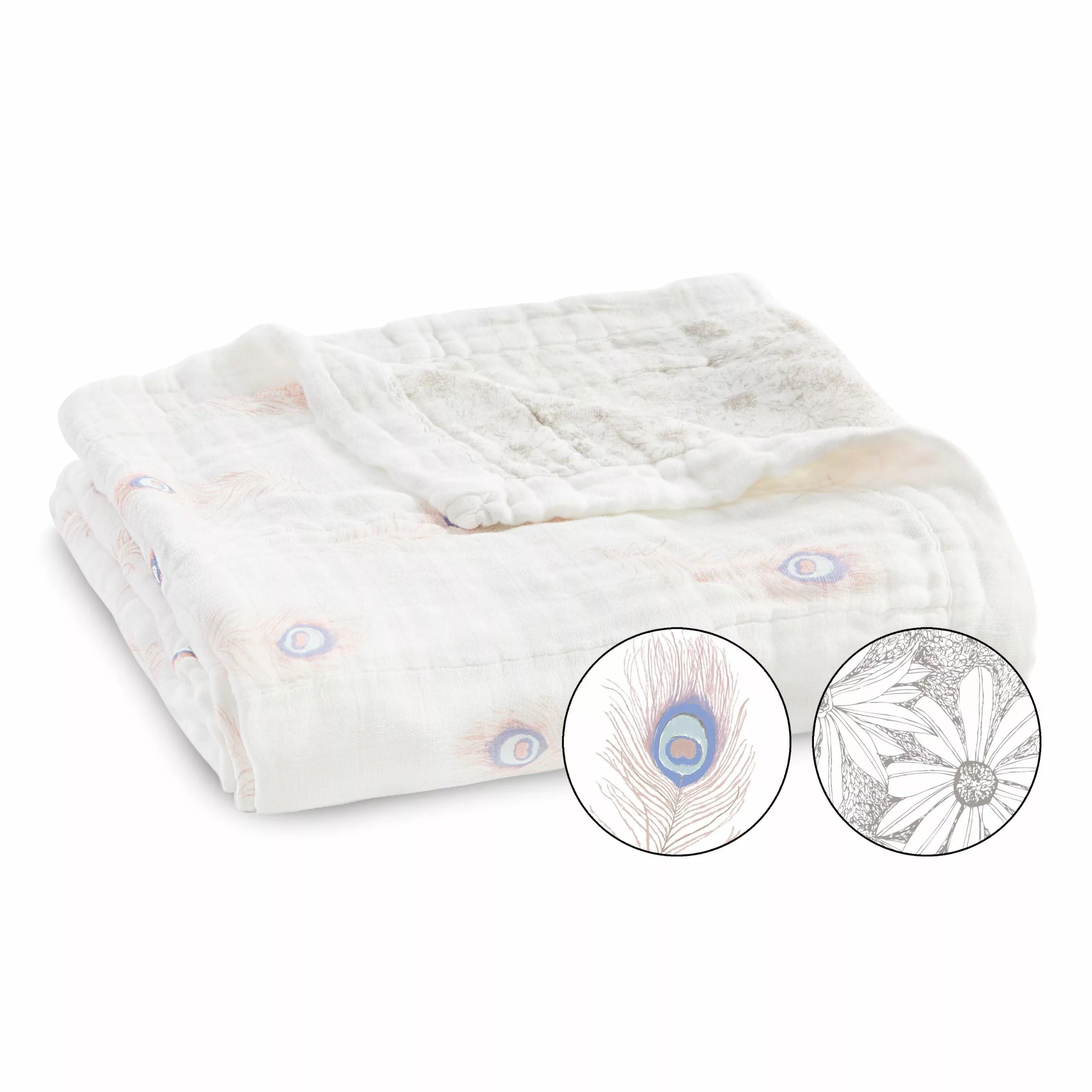 Perfect for those born to shine, 100 %cotton muslin. Dream blanket gets a metallic makeover with new prints that are soft as they are shimmery, mase of 4 layers of breathable muslin.