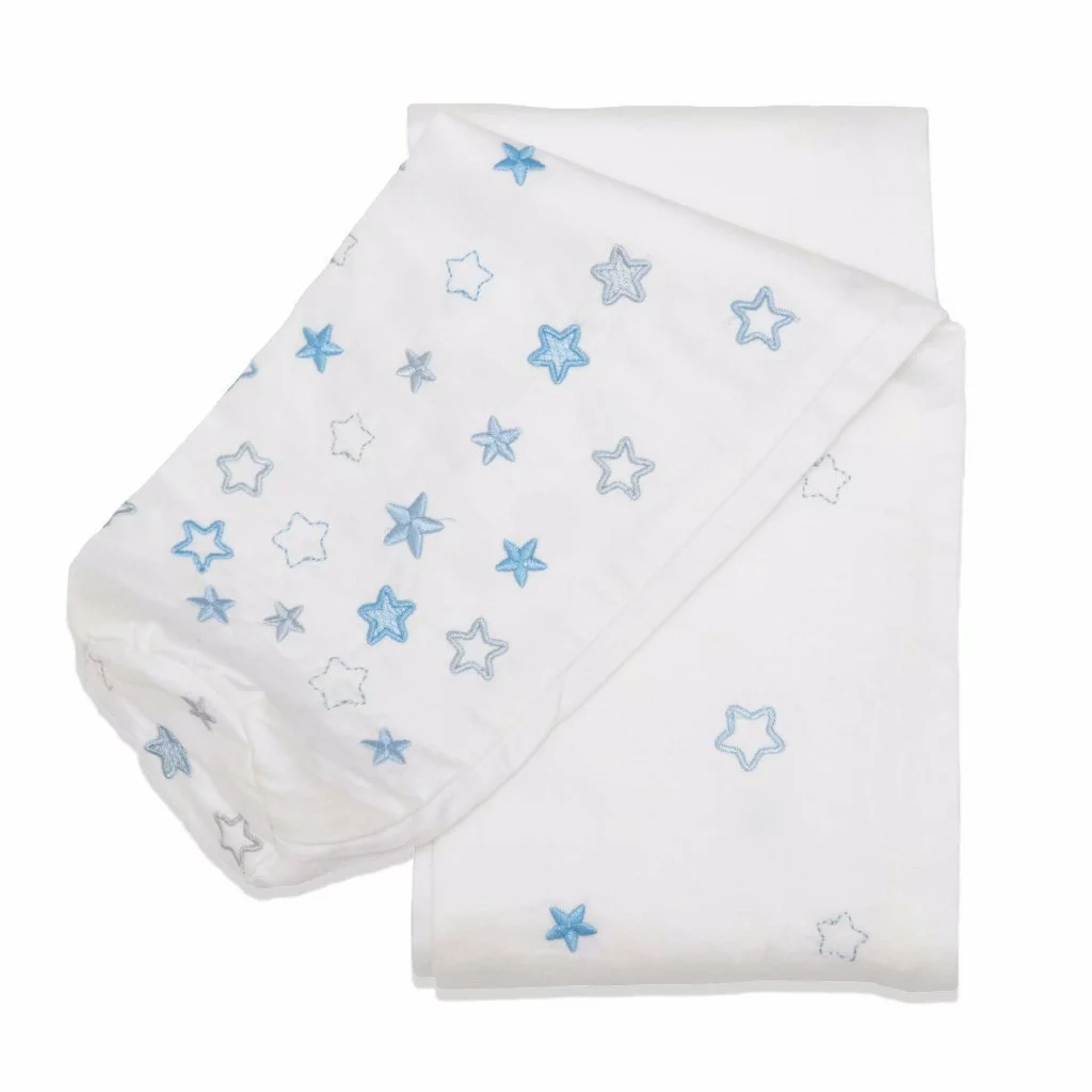 The cot bumpers are a great addition to your nursery. They offer a unique cordless design with an Egyptian Cotton cover to fit our wool cot bumper inners. The cot bumpers are very versatile as they fit all cots and are also great for tummy time (before babies are strong enough to prop on their forearms unaided). This Embroidered Baby Birds Cordless Cot Bumper (Blue) goes beautifully with our Baby Owls (blue polka dot) baby bedding collection.