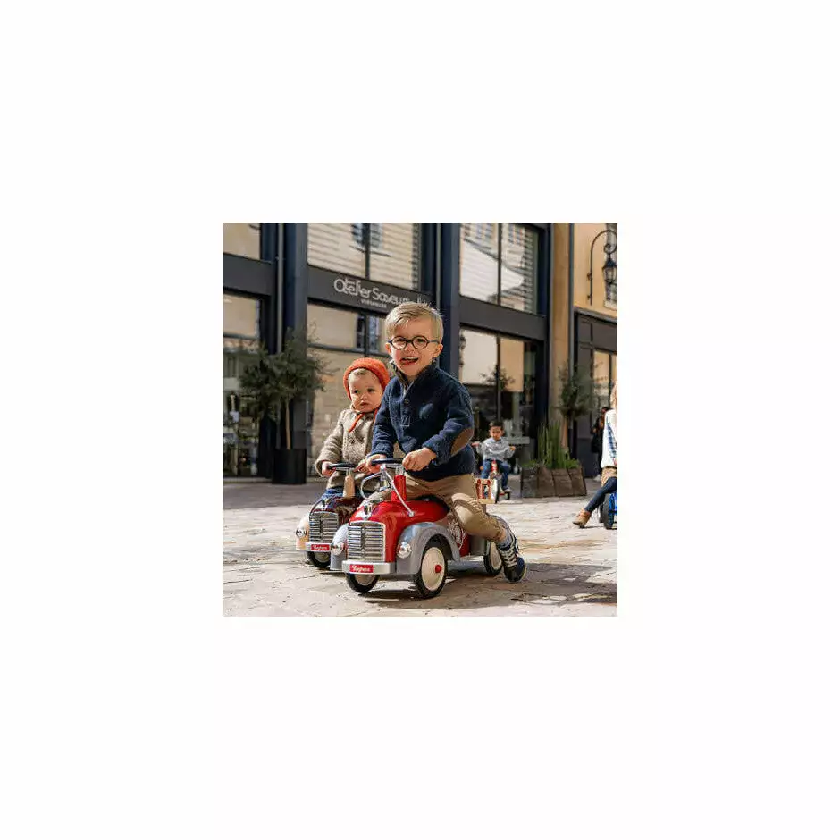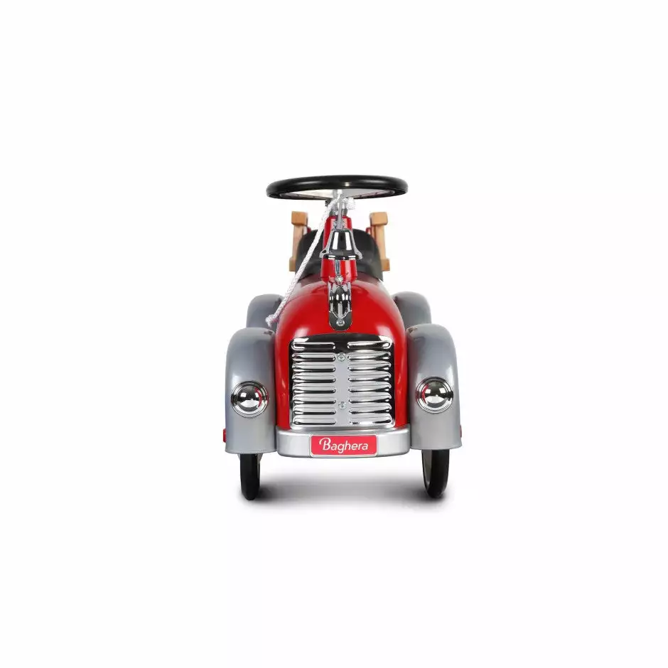 This fire-truck ride-on is equipped with real functional steering. Baby will quickly find their feet with this new car and the rubber tyres will help to keep them stable and move quietly around the house. The old-style fire trucks of the 50s inspire this ride-on. With its red chassis and its accessories, baby will be able to pretend they’re a real fire fighter and imagine exciting stories. The bell is functional. Baby’s imagination will be fired up as they set off on dangerous missions aboard this truck.