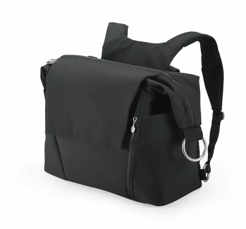 The newly designed Stokke Changing Bag offers an ingenious twist! It can be attached to stroller or used as a shoulder bag or backpack. It is easily adjusted with removable rings. Easy access to all your baby essentials. Various sized pockets including a waterproof side pocket for added conveniences. Changing mat is now placed in the side opening for easier access and offers extra padding. A detachable changing purse is included.