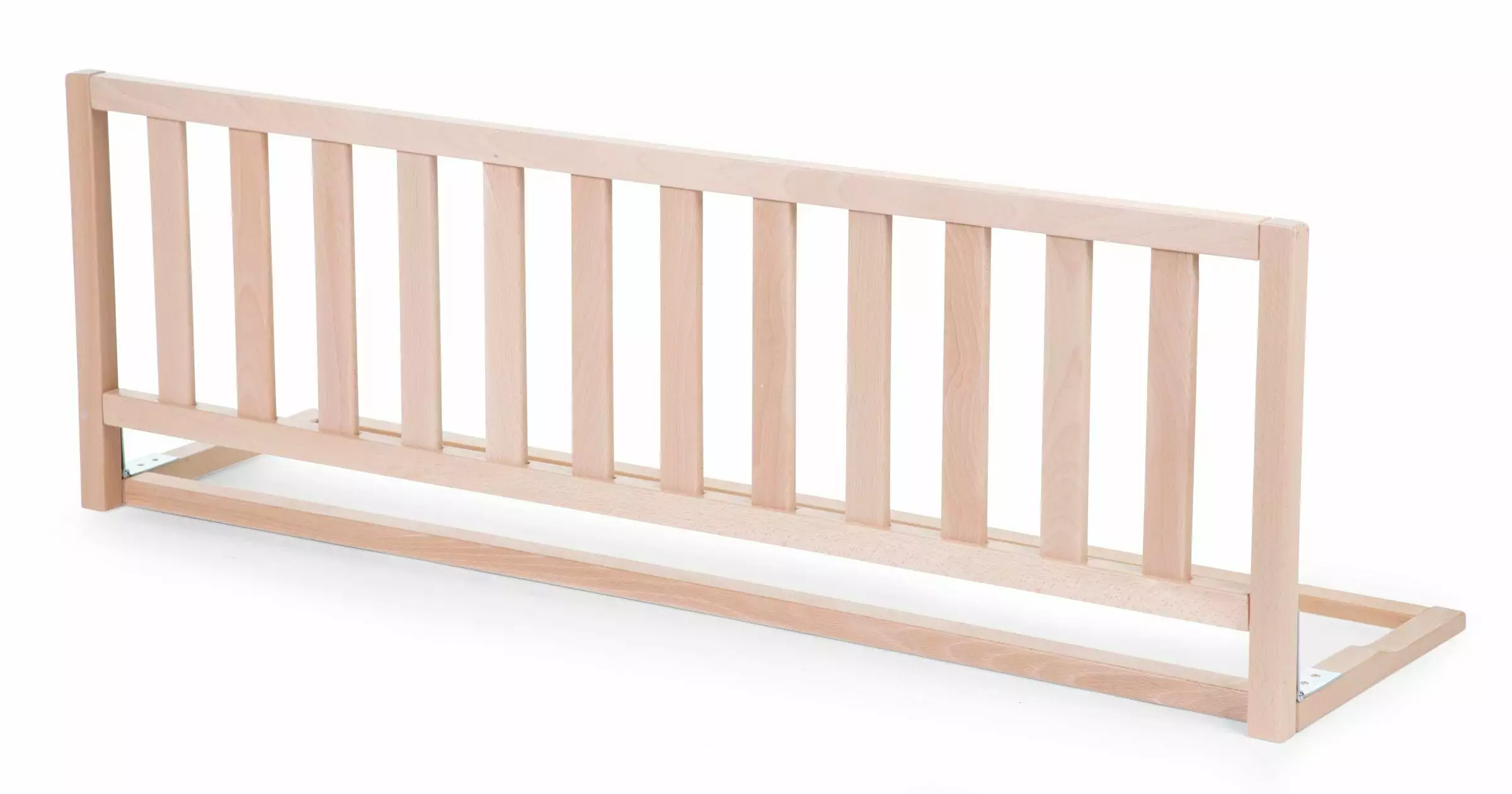 White bed rail that prevents toddlers from falling out of their beds. The bed rail ensures the safety of your toddler when sleeping in a bigger bed.