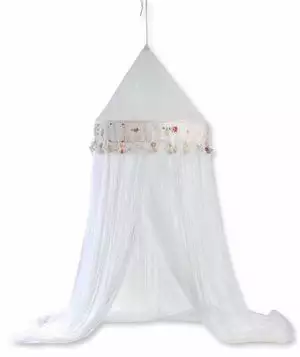 Beautiful mosquito net with handmade edge from vintage sari fabrics. There is also an additional loop for a heart hanger.
