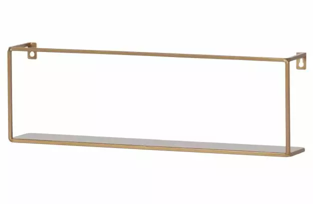 Additional description This Meert wall shelf comes from the collection of the Dutch brand WOOOD. The iron wall shelf is powder coated with a golden colour. Meert wall shelf is available in 50 cm length and 100 cm length. This wall shelf is also available in a black version.