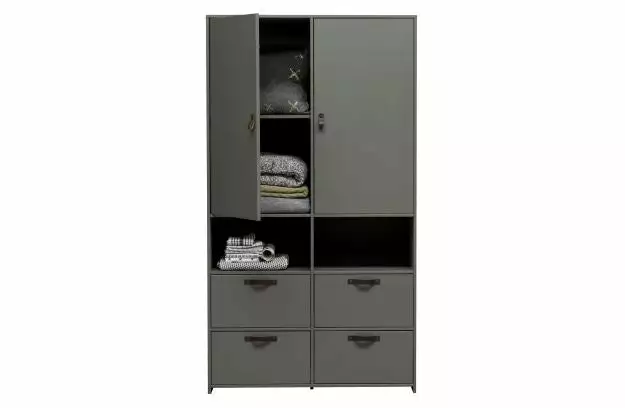 Additional description Modern, practical wardrobe with cool look Solid, FSC certified, pine lacquered in green soap tint Nice; two open compartments for accessories available H 185 x W 103 x D 40 cm This Stage wardrobe frrom the collection of the Dutch brand vtwonen is modern and practical and has a tough look.