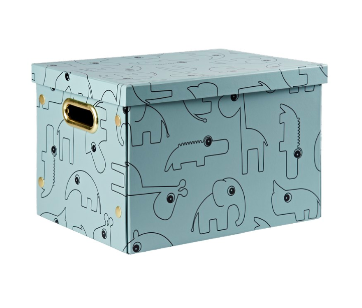 The storage box is easily assembled with metal press buttons and designed to fit the Done by Deer storage rack. The gold metal handles makes it easy to carry.