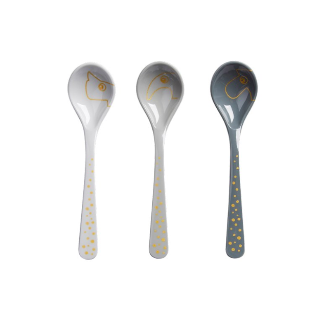 Raffi, Elphee and Ozzo will help you introduce your baby to solids. The long handle will get you to the bottom of any meal. A perfect baby spoon set for first bites.
