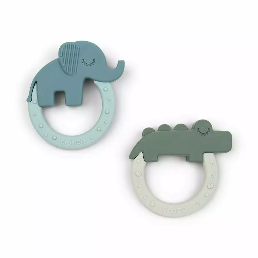 Set with two soft silicone teethers shaped as the Deer friends Croco and Elphee. The teethers are easy for little hands to hold and the different shapes and textures will help stimulate and soothe itchy gums.
