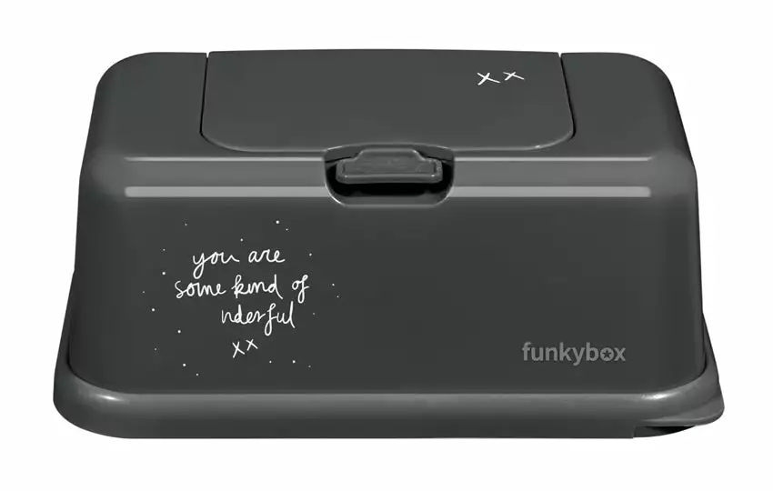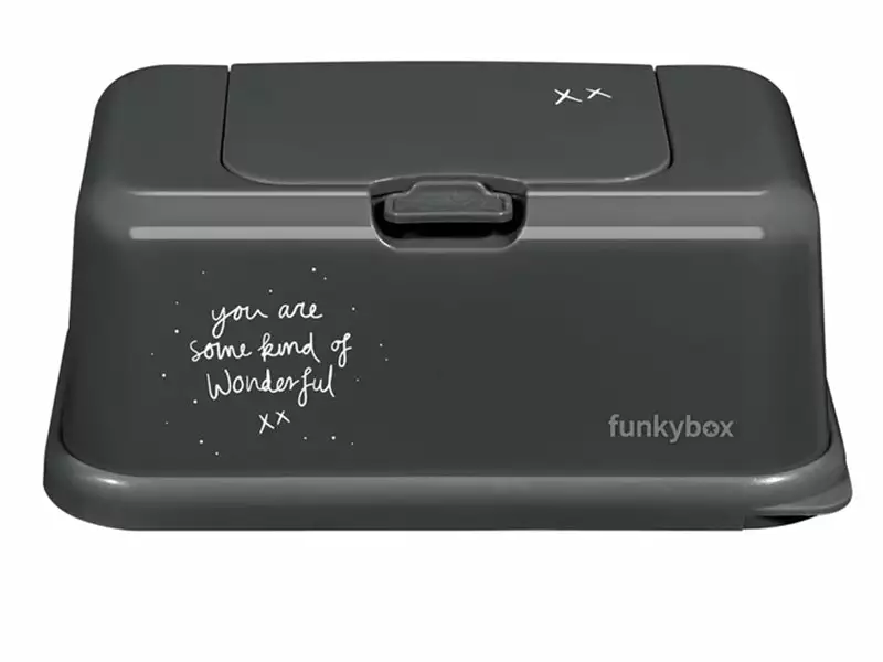 With Funkybox wipe dispensers, gone are the days of dried, browning wipes and hard to open packets.Simply place your packet of wipes into the box, press the button which opens the lid to dispense the wipes as and when you require one.These boxes are not just for babies room, use them at the table for messy toddlers dinner times and use them in the bathrooms, perfect for potty training.Get rid of the unsightly packets of wipes laying around your home, and replace them with the decorative Funkyboxes.A product that you will use from birth through to toddlers and beyond. The perfect investment for baby and your home!Our boxes are made with non-toxic Polypropylene plastic, which is a recyclable plastic. They have been designed to be lightweight and robust so all though they seem bendy, they are designed this way to make them a flexible hard wearing plastic. The base is a rubber/plastic mix which gives the box a grip.