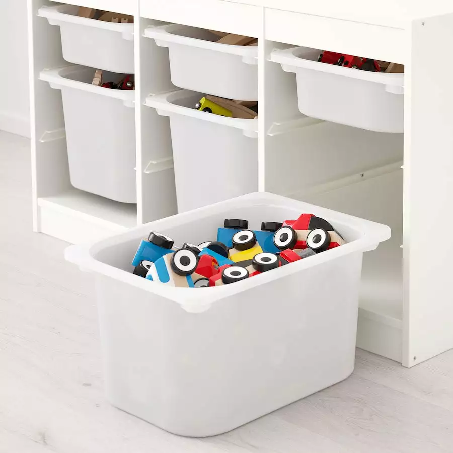Children need space to play and good toy stores such as TROFAST – a series with sturdy wooden base elements and light plastic trays that your child can easily pull out, carry and put back again