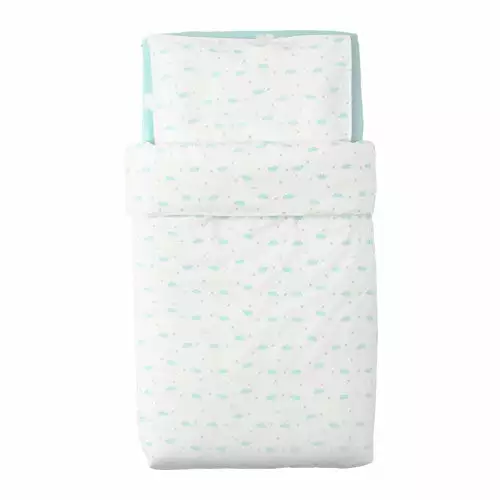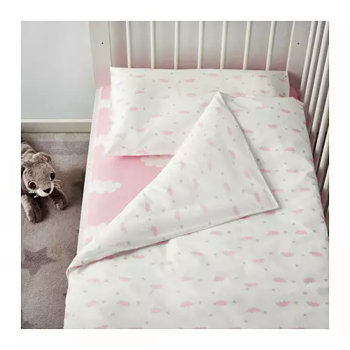 The tightly-woven fabric is of 100% cotton and extra durable, fade-resistant and soft. The set includes: fitted sheet, duvet cover and cushion cover.