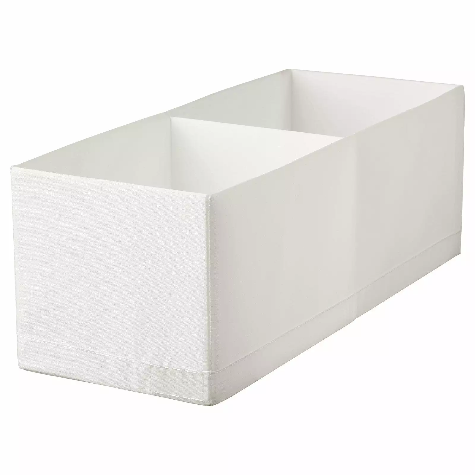 Have one box for socks, another for training gear or folded sweaters. These boxes divide your storage and make good use of space. Use with other STUK products for complete control of your storage spaces.