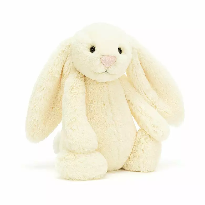Bashful Cream Bunny’s gorgeous long ears look like two big dollops of clotted cream. Mmmm! Time for scones and a hippity-hop on the grass! With a bunny pal as soft as butter icing, summer days are so inviting!