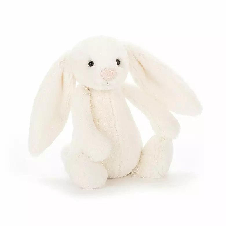 Have a hug and a huggable moment with Bashful range. In gorgeous, soothing fur, this bunny’s as soft as a wandering cloud. With long lopsy ears and a squishy tummy, this fluffy Bashful’s just so bonny. A cosy companion to warm your heart on wild and wintry days.