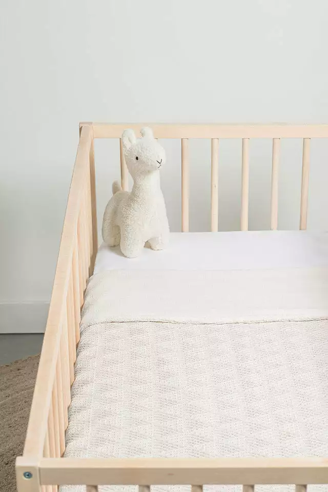 sleep tight, don’t let the bed bugs bite! Let your little one dream away under this knitted blanket. The blanket has a nice structure that looks like waves. A blanket is nice for your little one to sleep under: it gives a secure feeling and keeps your baby nice and warm. The warm colors fit well in any baby room. The blanket can be washed well in the washing machine and can also be combined with a sheet from the Leaves collection.