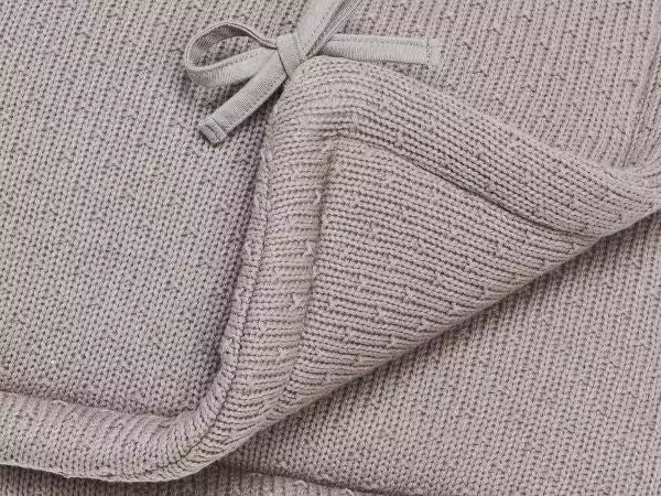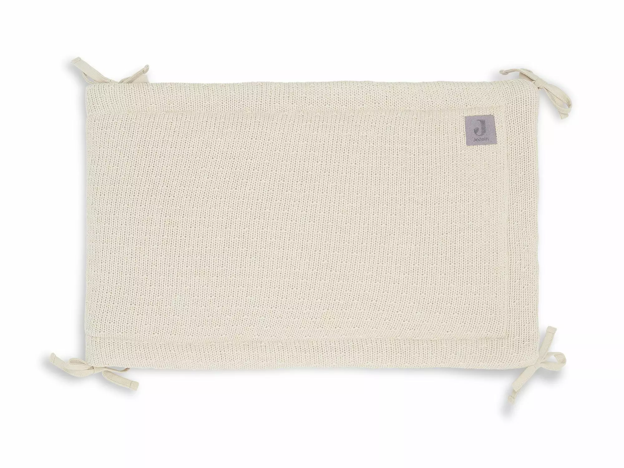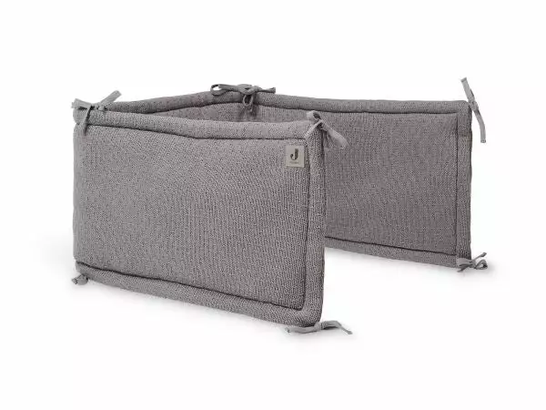 The playpen bumper or bed bumper can be used on two sides. A soft fleece side or a nice knitted side. The knitted side has a recognizable pattern from Jollein’s Bliss Knit theme.