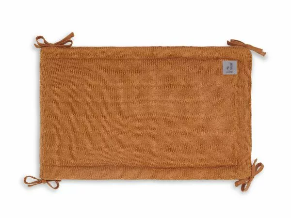 Do you also have a little one who is very busy in his sleep? With this bed bumper bumping your head on the hard bars is a thing of the past. The padded bumper is nice and soft and easy to attach to the bed or to the playpen. It is also very cozy and gives a sense of security. The box bed bumper can be used on two sides. A soft fleece side, or a nice knitted side. The bumper matches very well with, for example, the blanket or playpen rug from the River Knit theme.