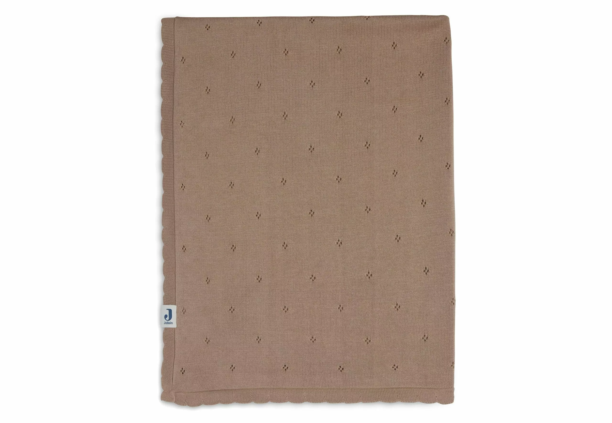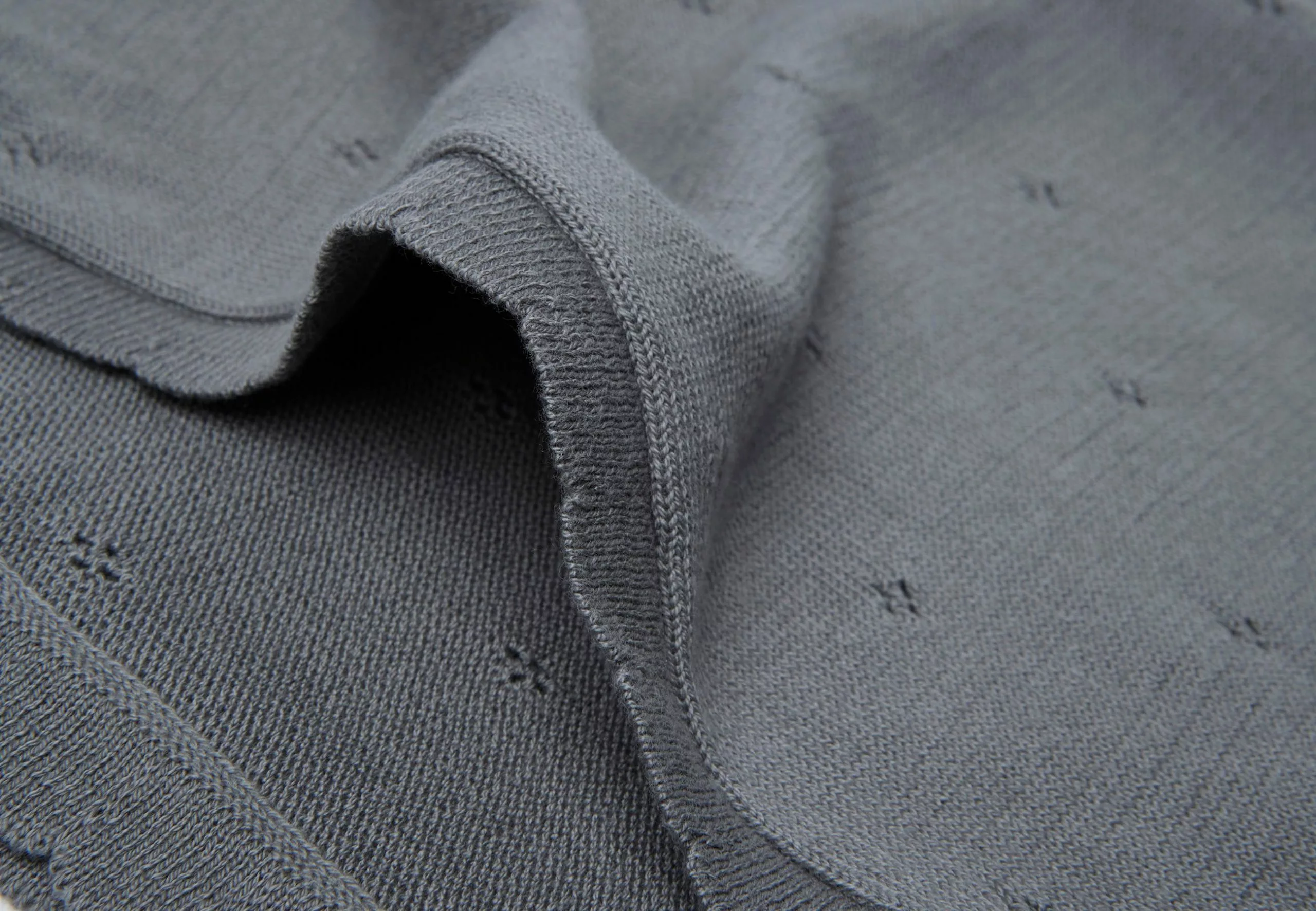 You can shop the Pointelle blanket in the colors ivory, strom gray and biscuit in the sizes 75×100 cm for the crib and 100×150 cm in the cot.