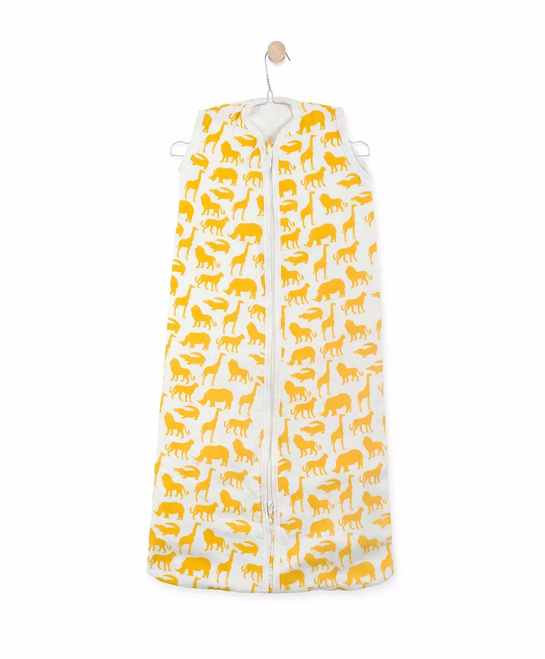 Beautiful hydrophilic sleeping bag from Jollein. The hydrophilic sleeping bag is made of 100% hydrophilic cotton and is printed with safari animals. The sleeping bag is available in the colors green, ocher and gray in the sizes 70 cm, 90 cm and 110 cm. The TOG value is 0.7.