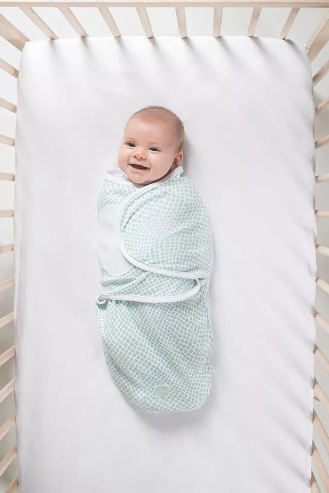 In the first months, it is nice to swaddle your little one in a wrapper because it gives a secure feeling. That way, your baby cannot wake itself up by touching its arms against the face. The zipper on the bottom makes changing very easy. You shop the speckled wrapper from Jollein in three colors: pink, gray and blue. “Sleep tight little one!”