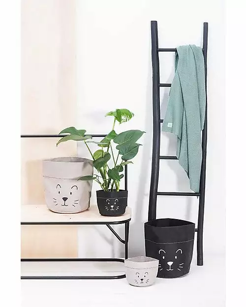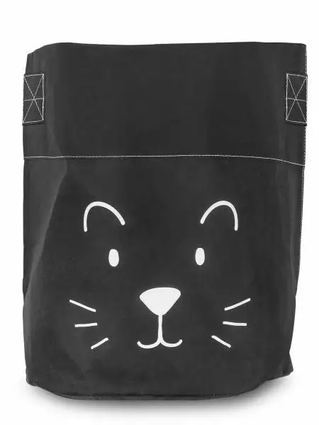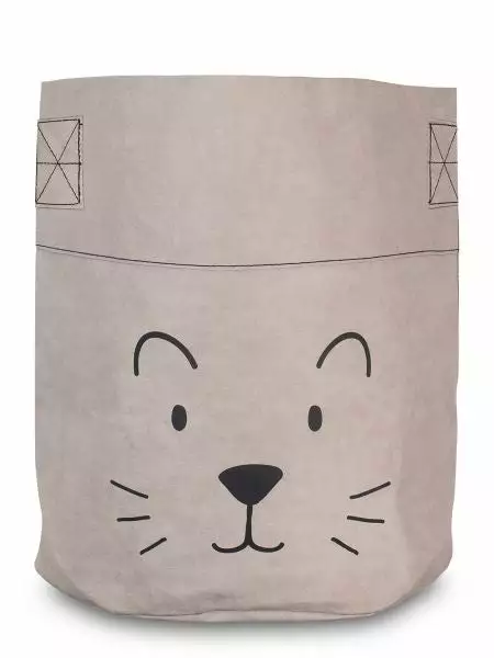 Very cute XL paperbag with little lion. The paperbag is made of strong paper and has a size of 35 x Ø30 cm. The basket is available in the colors gray and black. Due to the fragility of the material, you can only gently wipe the basket with a cloth.