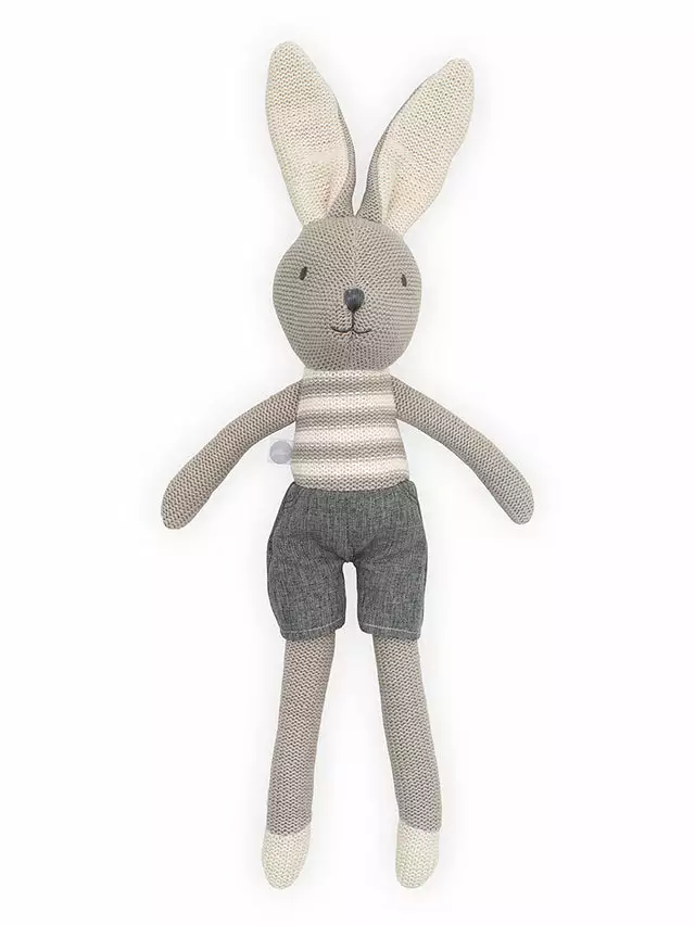 Cuddly Toy Rabbit are your new friends. Besides that they are very nice to cuddle with, they are also very nice to play with as dolls. The rabbits have nice clothes which contribute to the fantasy play of your toddler. The hugs are also a perfect maternity gift! Are you going for Joey or Nola?