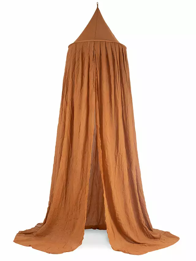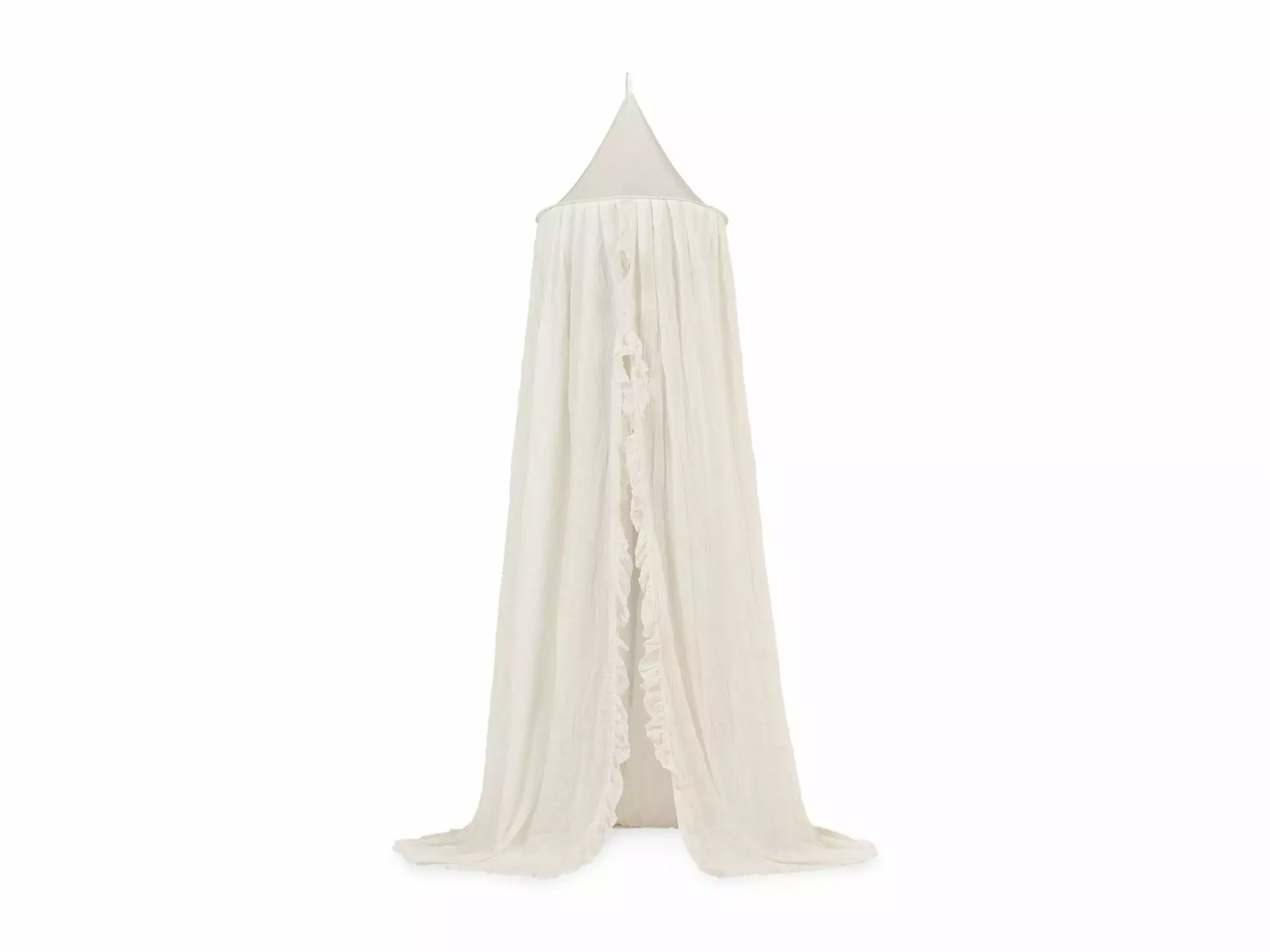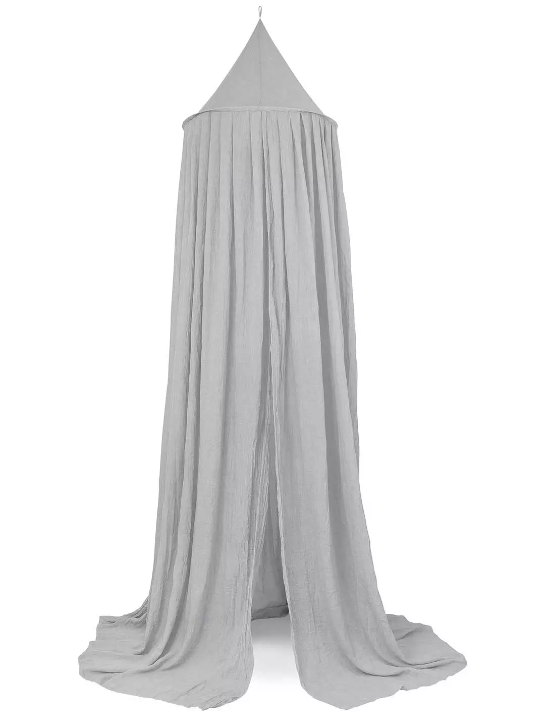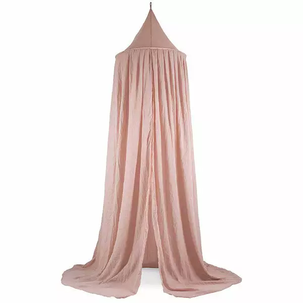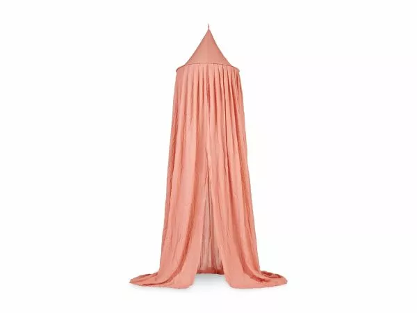 The mosquito net has a diameter of 55 cm above and a diameter of 440 cm below, so it is suitable for both a crib and a junior bed later. The height of the mosquito net is 205 cm high, but can of course also be hung lower.