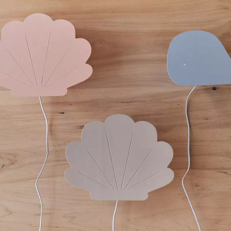 Beautiful, wooden wall lamp from Jollein. The lamp, in the shape of a whale, is made of MDF and is gray. The lamp is 36 cm wide and 29 cm high. Also available as a shell in pink and nougat. The lamp is not included, it fits an E14 bulb of 40 Watt. A cord and switch are attached to the lamp.