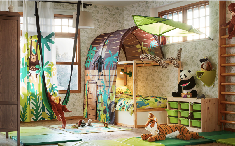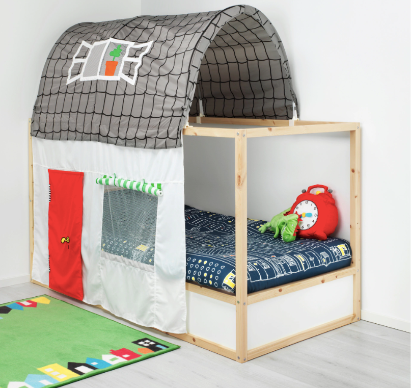 This low bed is perfect for younger children, but also grows with them. You can turn it upside down when your child gets older – creating a play corner in no time with space for play and cozy times.
