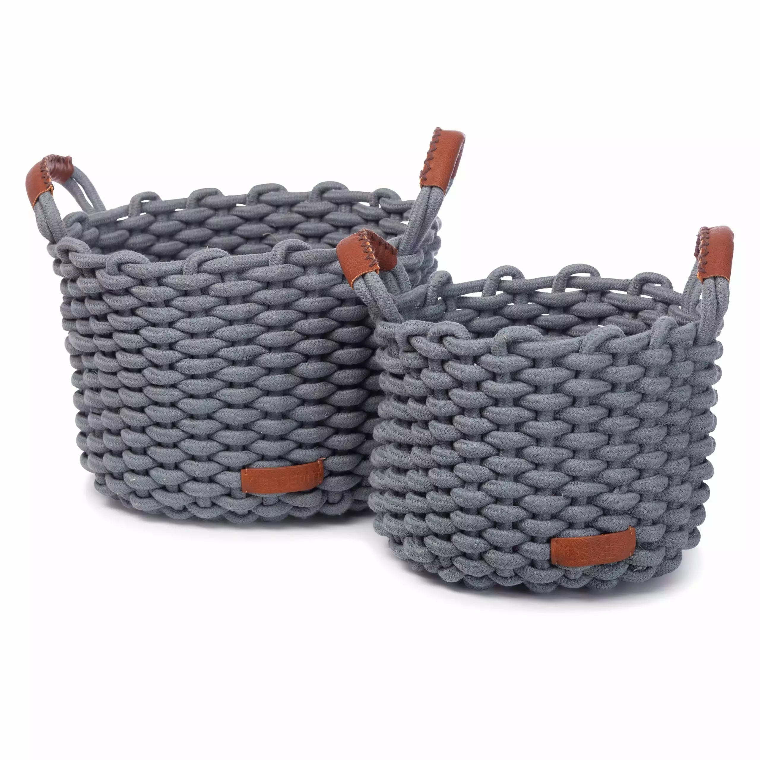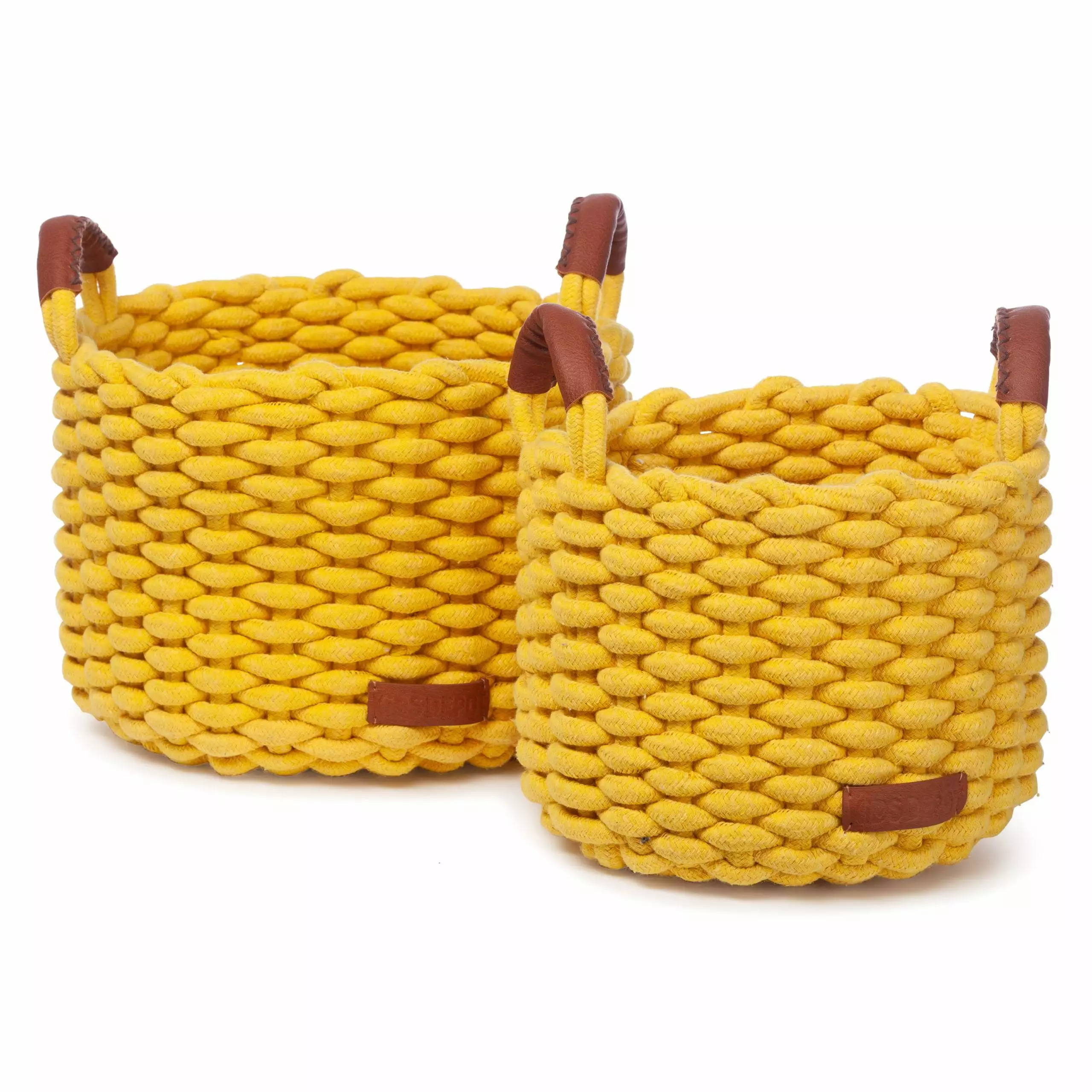 Korbo Set storage baskets are made of braided cord with leather-look handles. The baskets are sturdy and of high quality. The sets are available in 4 colors: yellow, mist. coral red and grey. A wonderful addition to any room: those are the KidsDepot Korbo Baskets. Moreover, you can store everything in these spacious baskets. From now on, store toys, clothing or accessories in these stylish baskets. You will receive a set of two baskets with different sizes: 23 x 18 cm. & 28 x 20 cm.
