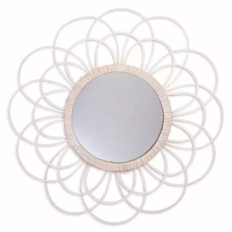Lovely round flower mirror made from cane in the colours white and natural.