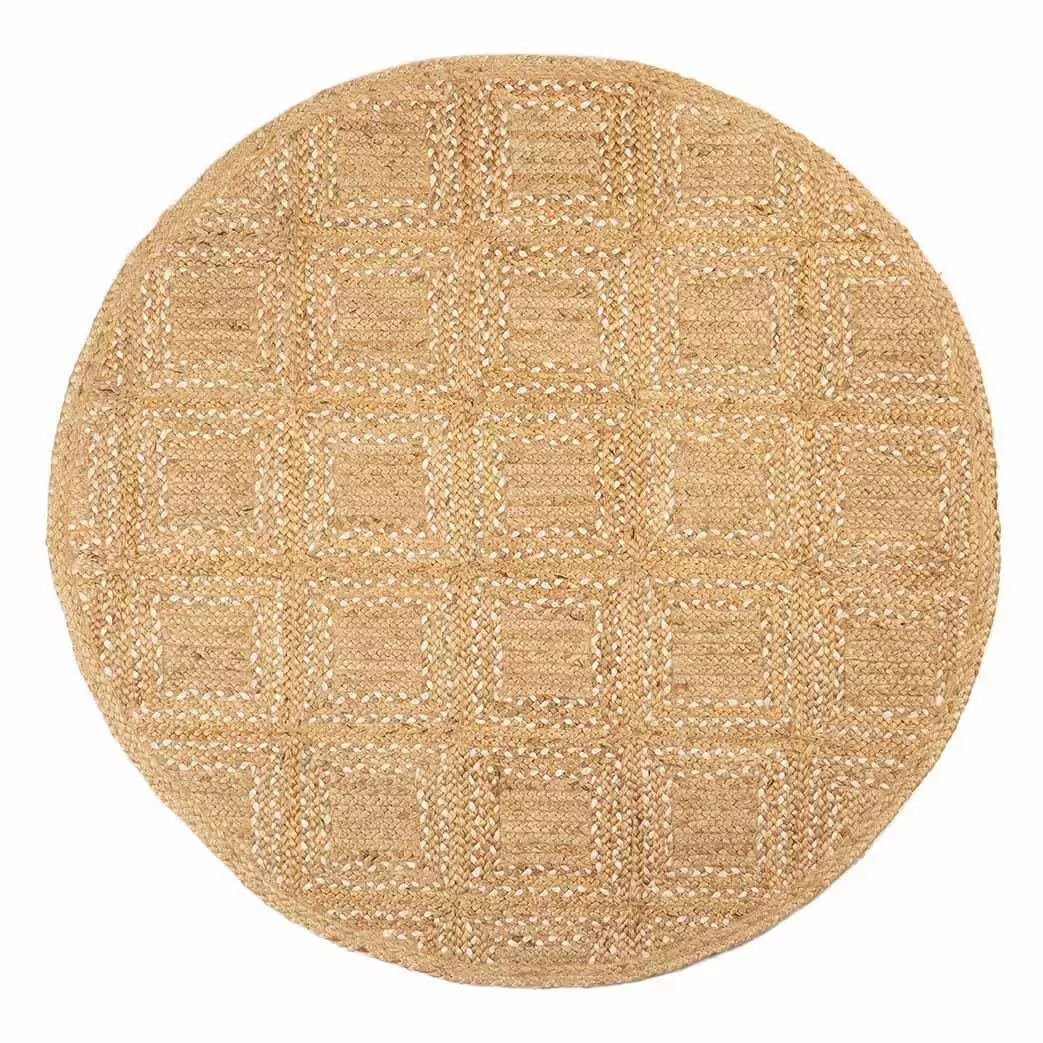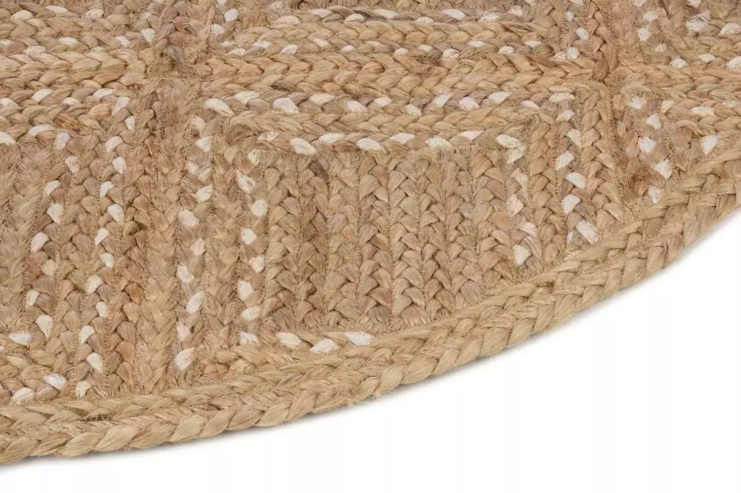 Nice round jute rug with backing. The rug has a subtle woven print.