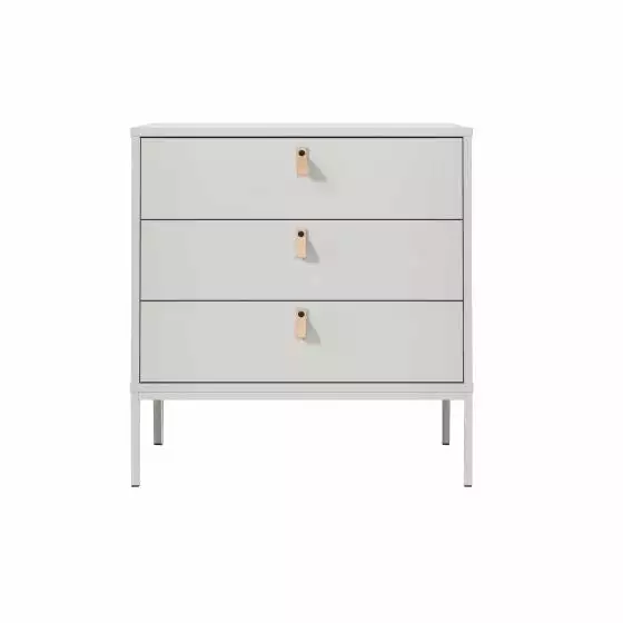 The Kidsmill Amy chest small has a playful look because of the high, metal legs and the leather handles. Perfect for a nursery! The chest is compact and only 85cm wide. Very convenient for a smaller nursery.