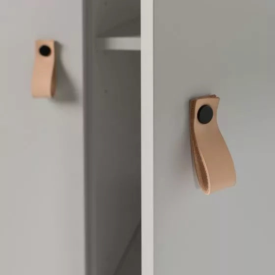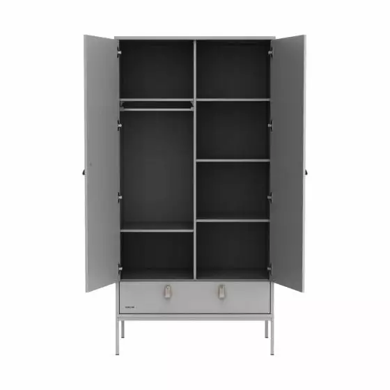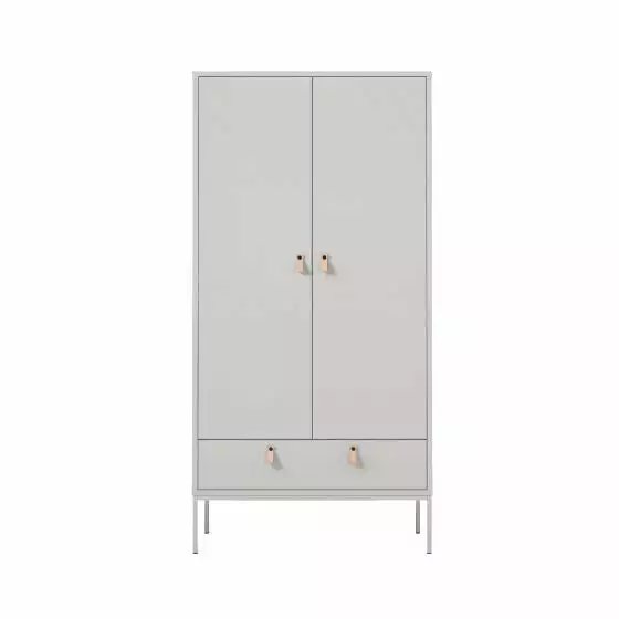 The Kidsmill Amy wardrobe offers a lot of storage space. On the left side of the door you will find two shelves and a hanging rail and behind the right door are three spacious shelves. The wardrobe is also equipped with a convenient drawer which guarantees extra storage space