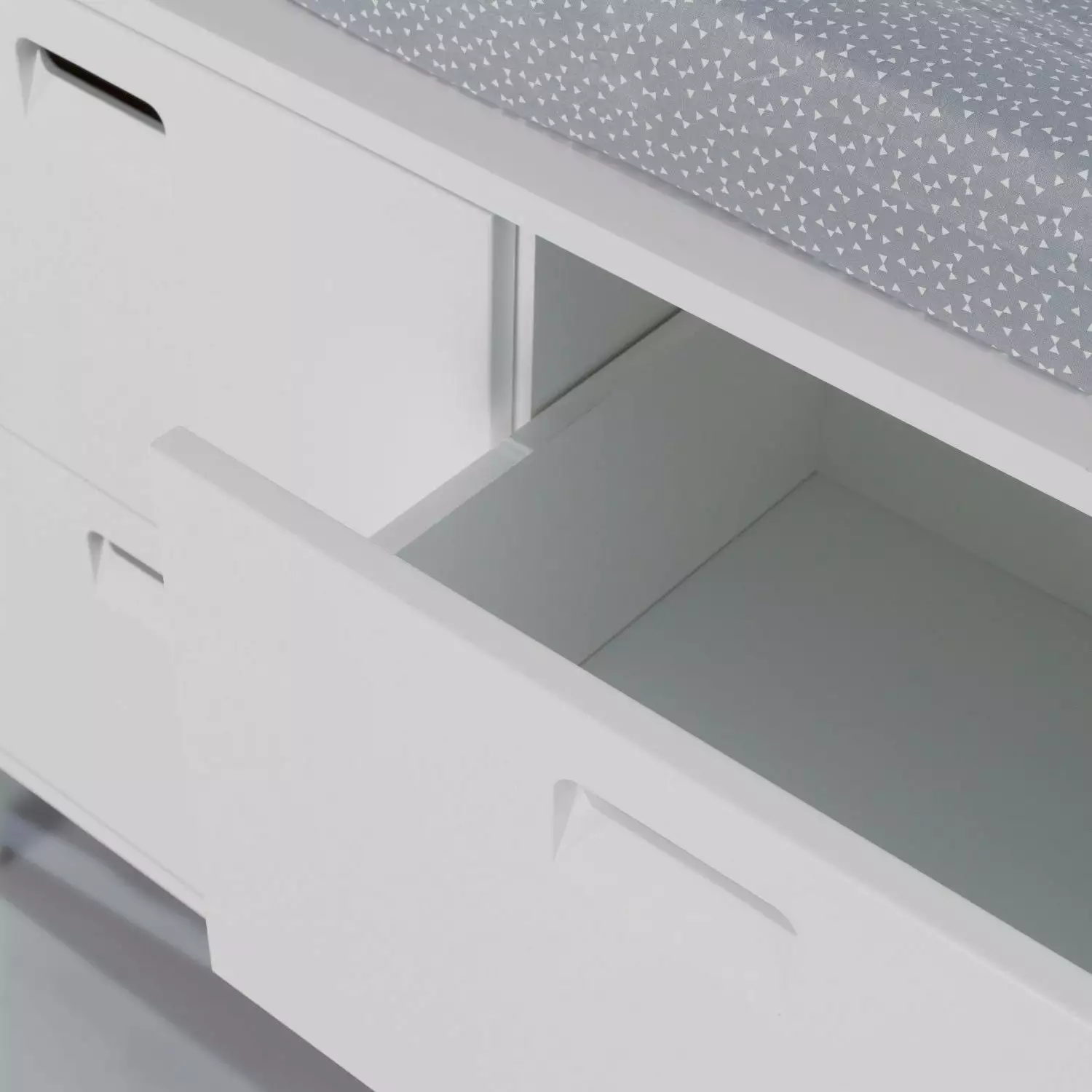 The Kidsmill Nikki Chest white has four spacious drawers that offer you plenty of storage space for you baby