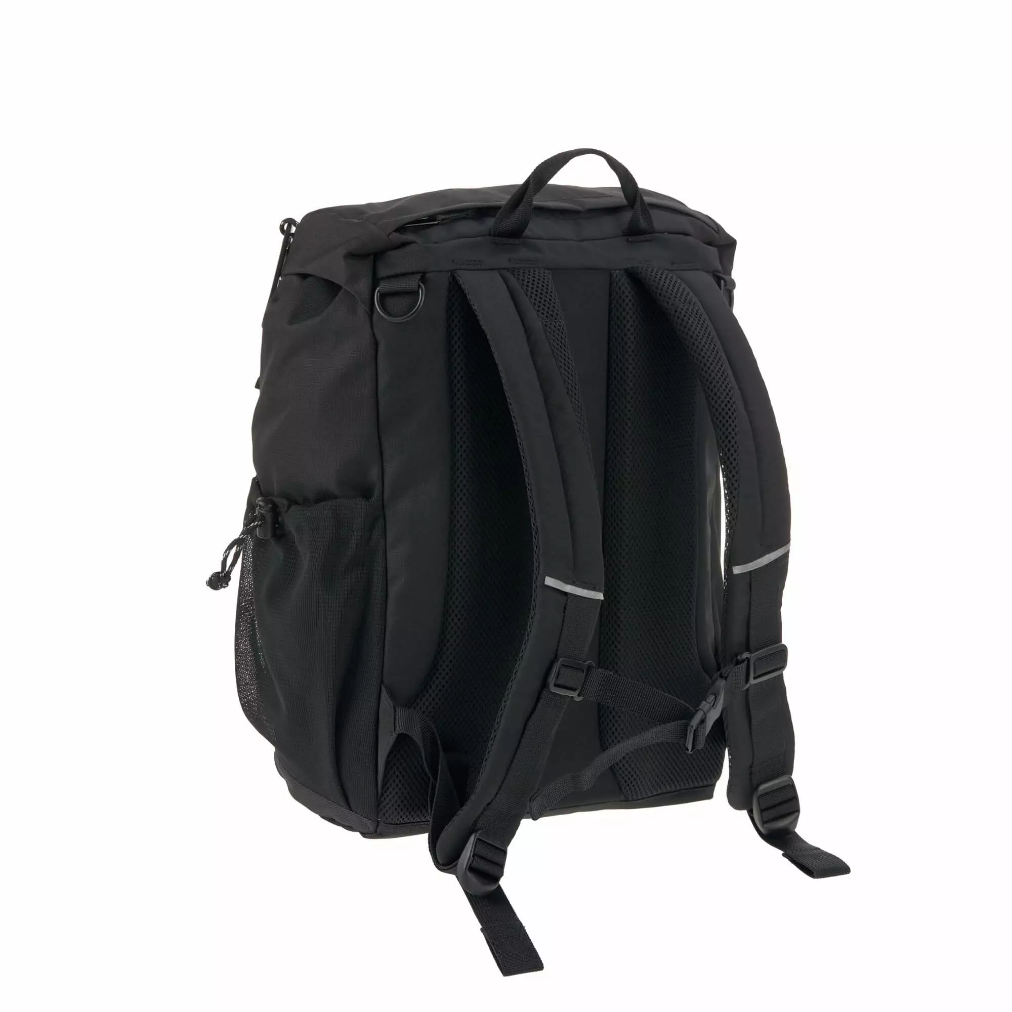 The padded back provides good air circulation thanks to ventilation ducts and the mesh fabric. The adjustable chest strap and adjustable, ergonomically shaped and padded shoulder straps offer even more comfort. The integrated neon orange rain cover, adjustable jacket holder and a snap hook, make this diaper backpack ready for your wildest adventures in any type of weather! Visibility in the dark is ensured with reflective elements such as the LÄSSIG logo.