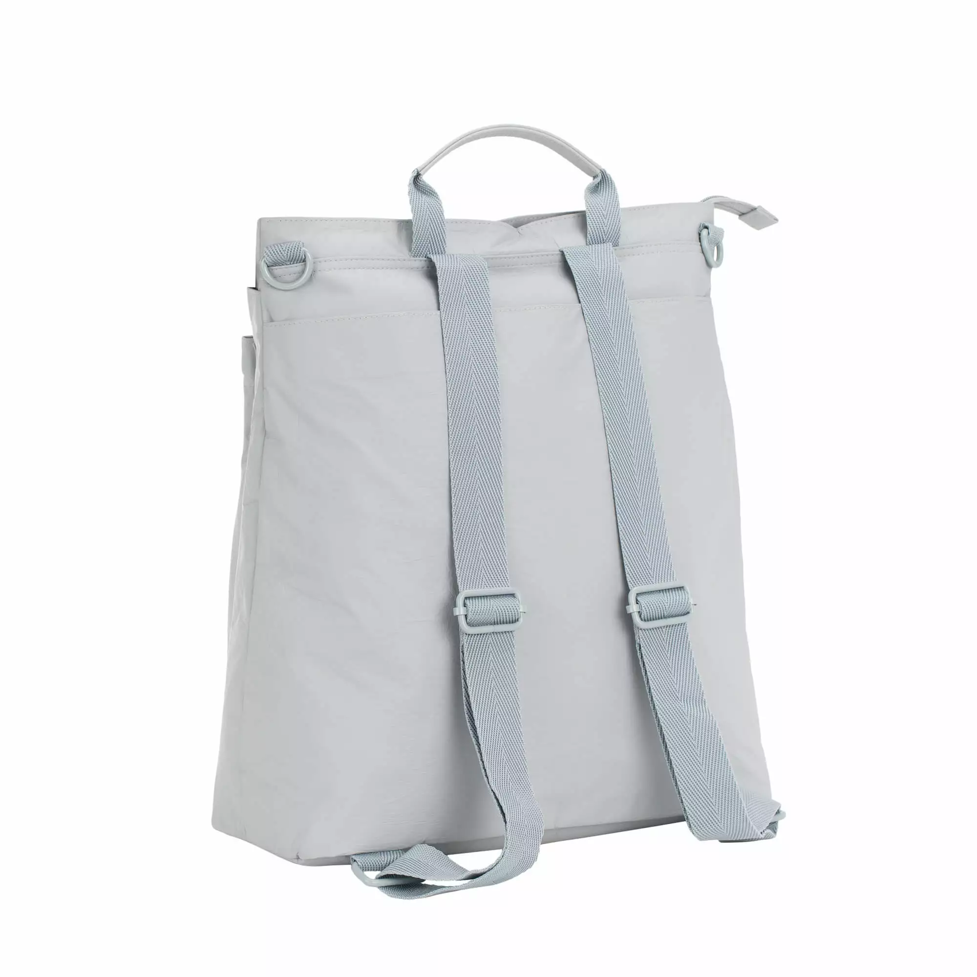 The diaper backpack has a matt surface defined by paper-touch optics. The innovative material combines several convincing properties. The base material Tyvek® used by DuPont™ is particularly light, tear-resistant and durable. This material also supports the bag’s sustainability, as the use of Tyvek® conserves resources. It consists of high density polyethylene fibers (HDPE) and is easy to recycle. The additional external PU coating gives the backpack water-repellent properties.