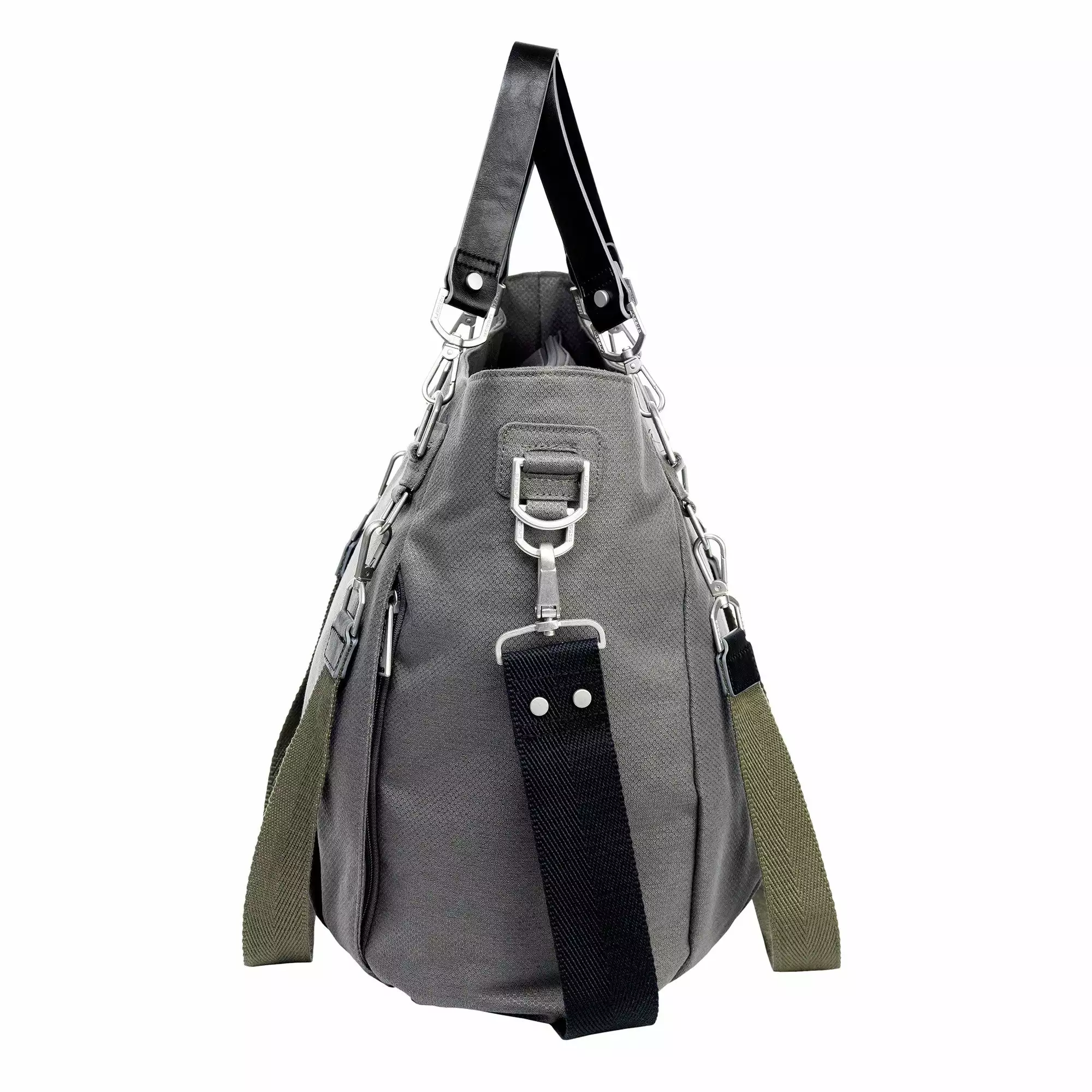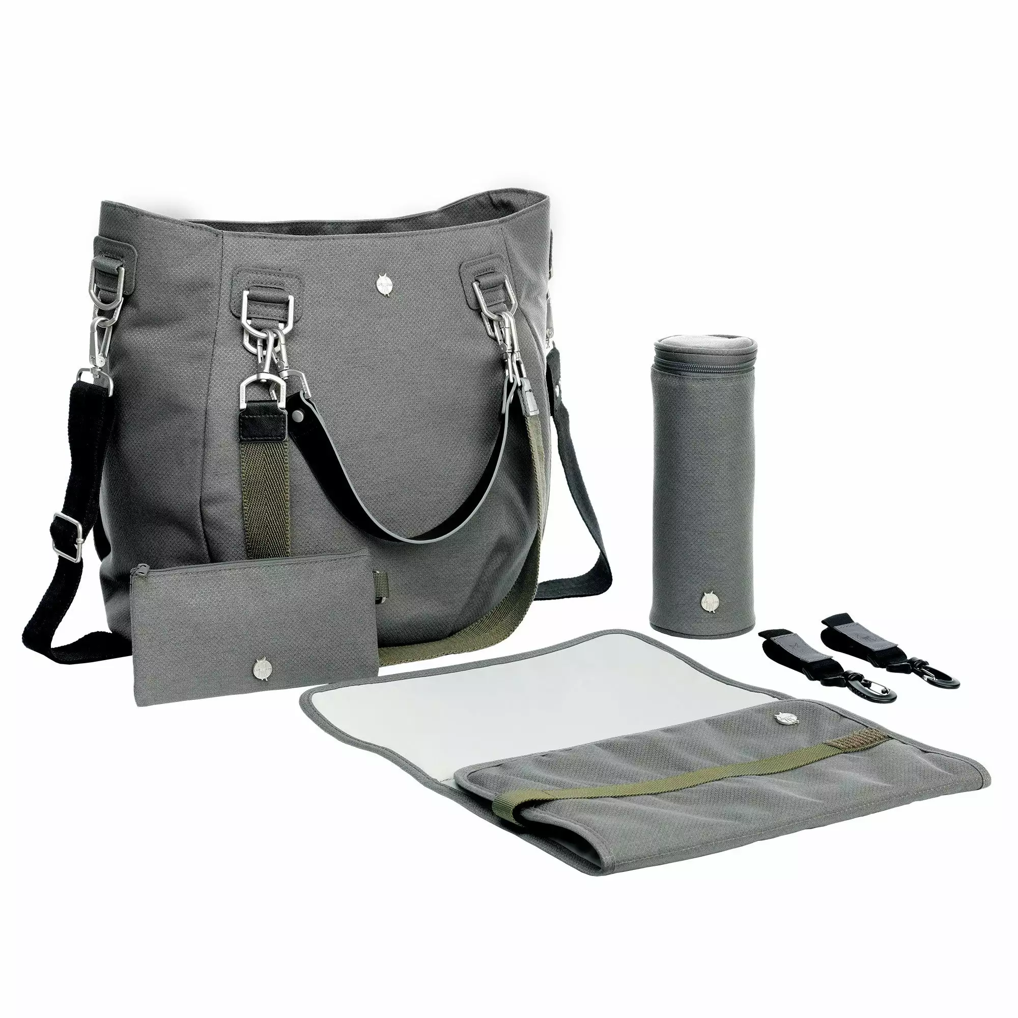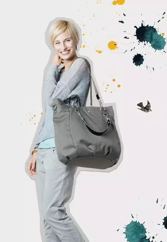 The Green Label Mix ‘n Match diaper bag made from recycled polyester offers plenty of versatility. It is a lasting companion for any mother who likes to be individual. This master of adaptability comes with three shoulder straps in various lengths, which can be swapped as you need or want like. Since they are also made in part from different materials, the straps can be recombined in a variety of ways to achieve that special look. With just a few simple adjustments, the bag can be carried in the hand or worn on or over the shoulder. There are also matching purses so that the woman is perfectly equipped for running around town or just going for a walk. Like all other diaper bags, the Mix ‘n Match Bag has numerous accessories to make diaper changing on-the-go as convenient as possible. Also included are a water-repellent changing mat, insulated, removable bottle holder, accessories pouch, water-repellent wet compartment, removable baby food jar holder, stroller attachment, key chain and integrated cellphone pocket. And when the child is no longer in diapers, this ecological allrounder is the perfect handbag for the woman on the go.