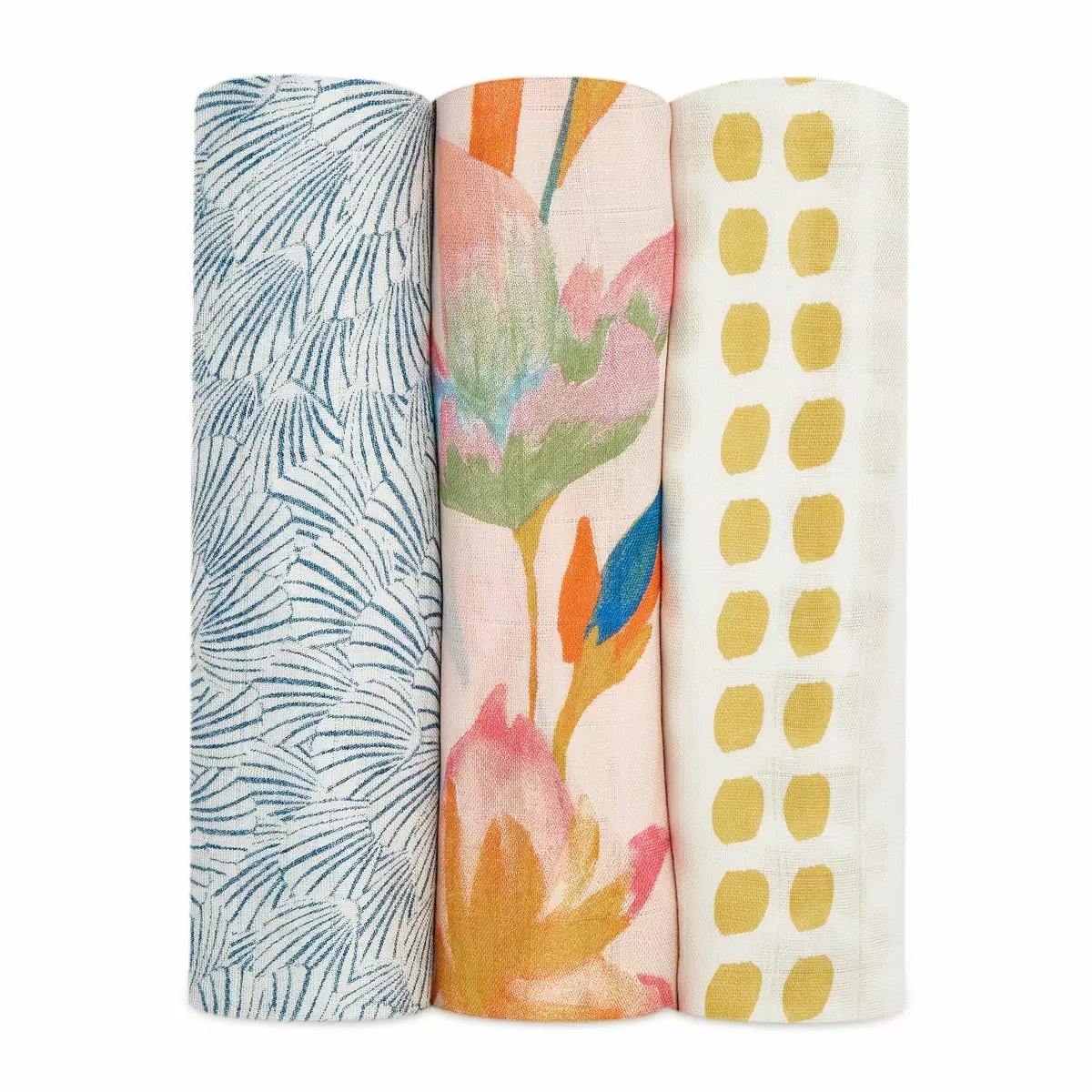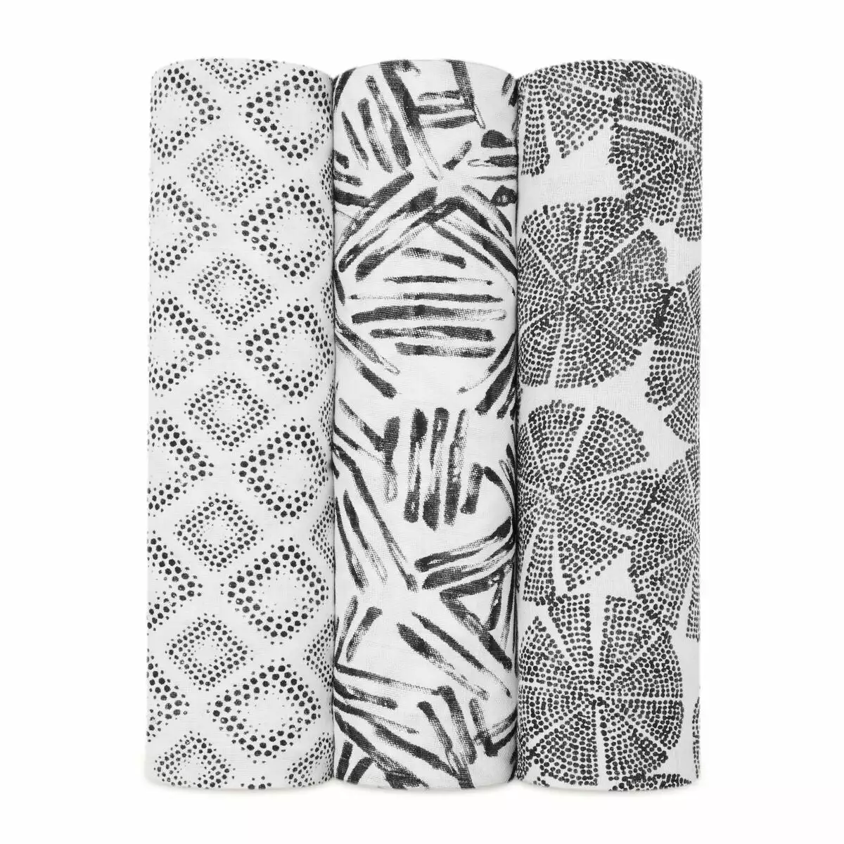 Aden +Anais has transformed generations of swaddling, mothers have swaddled and cared for their children with natural muslin. aden + anais has gone one step further to bring you soft, silky rayon from bamboo fiber muslin. Luxuriously soft, it is the ideal fabric to use on delicate baby skin. All aden + anais products are available in fashion forward prints that say as much about your style as they do about the traditions that bind mothers together around the world.