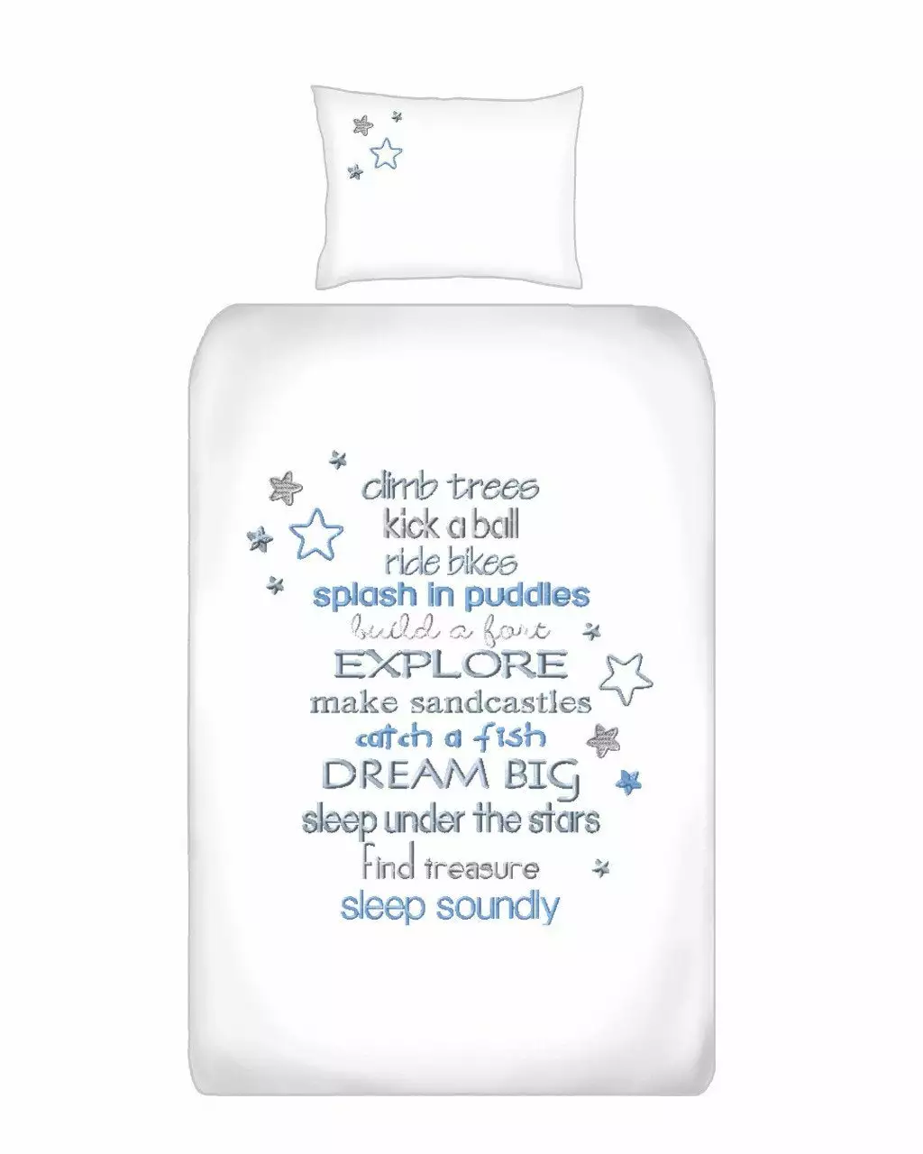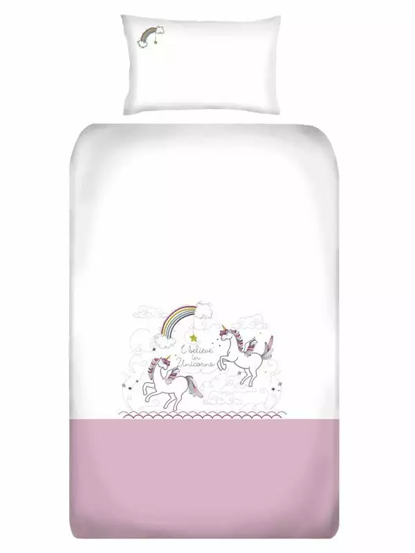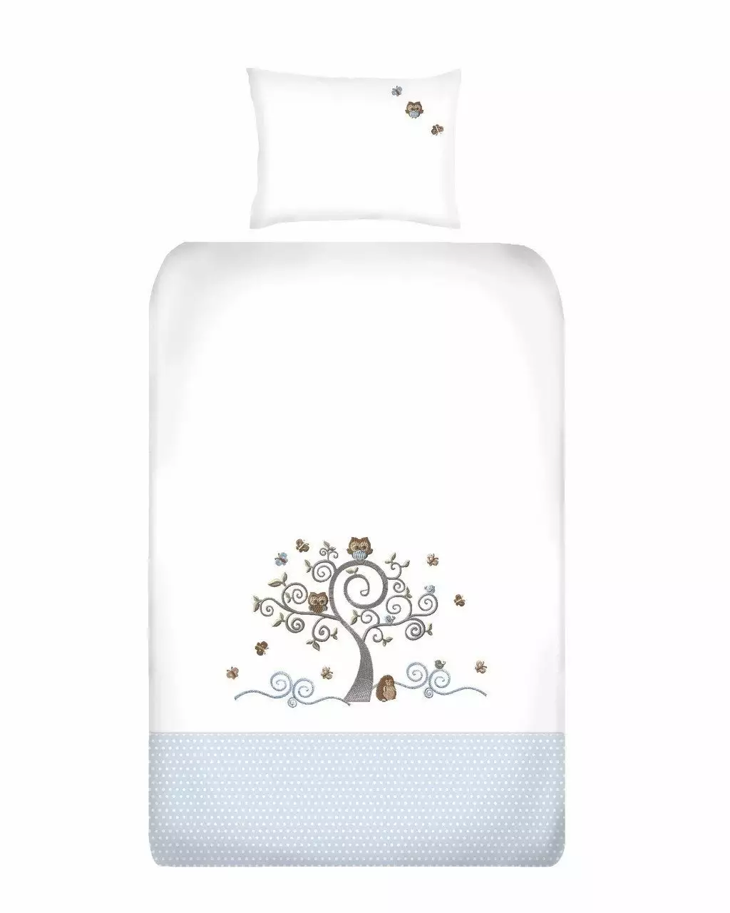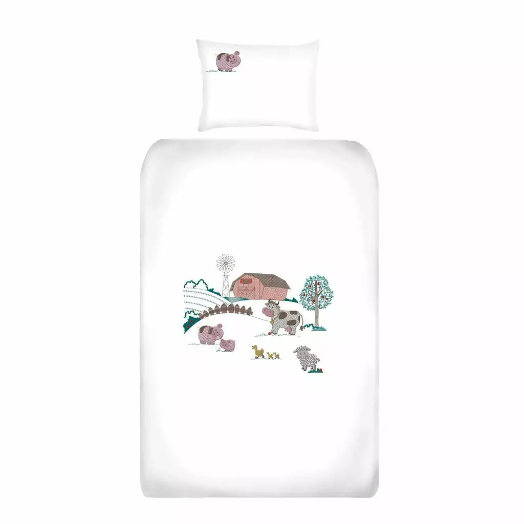 The cot duvet cover set design is created using a mix of soft satin and running stitch embroidery. A piped finish compliments the design and makes a product that will not only enhance the look of your nursery, but will ensure that your baby has the best sleeping environment possible.
