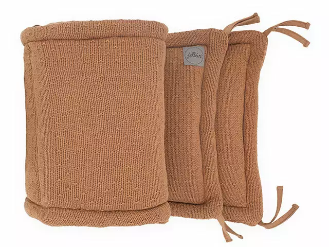 Do you also have a little one who is very busy in his sleep? With this bed bumper, hitting the hard bars is a thing of the past. The padded bumper is nice and soft and easy to attach to the bed or playpen. It is also very cozy and gives a feeling of security. You can use the box bed bumper on two sides. A soft fleece side, or a nice knitted side. The bumper matches very well with, for example, the blanket or the playpen rug from the River Knit theme.