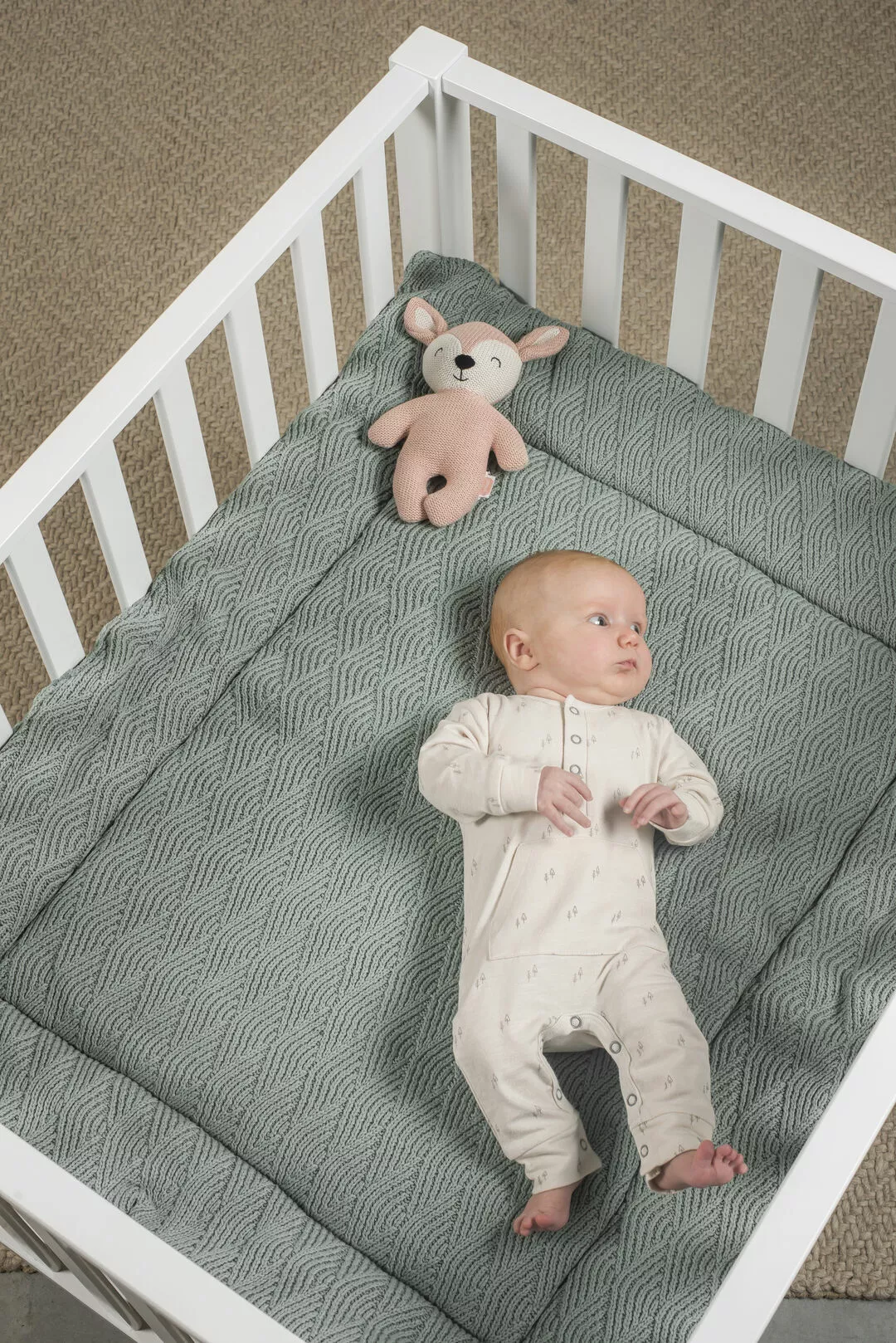 Play, sleep, chill and start again … Your baby is busy! A box is therefore super handy with a little one at home. You have your hands free for a while and your baby can have fun alone or take a nap. It is nice if it is as comfortable as possible. The Bliss knit playpen mat is ideally suited for this; It is nice and thick and feels super soft. You can also use it in combination with a removable box cover for extra comfort. Practical and comfortable.