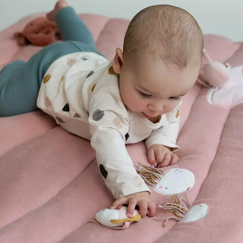 On this soft, padded Little Dutch playpen mat, babies will find themselves in a colourful underwater world. Animals, shells and plants are all around waiting to be discovered. They won’t have time to get bored. Perfect for use in the playpen and to take with you when traveling.