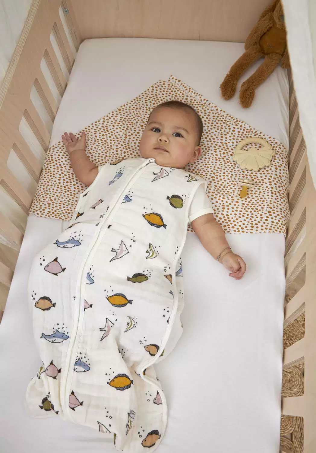This Meyco muslin sleeping bag is made of 100% cotton and has a YKK zip. Wonderfully soft and comfortable for the sensitive baby skin. The muslin absorbs moisture well and dries quickly. The muslin sleeping bag is ideal for the summer.