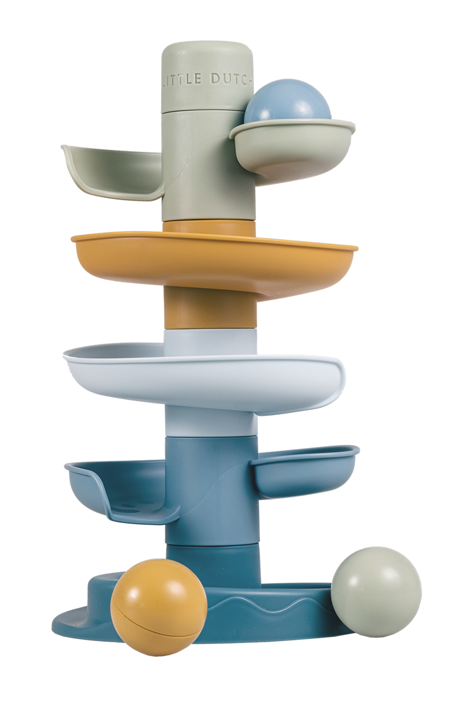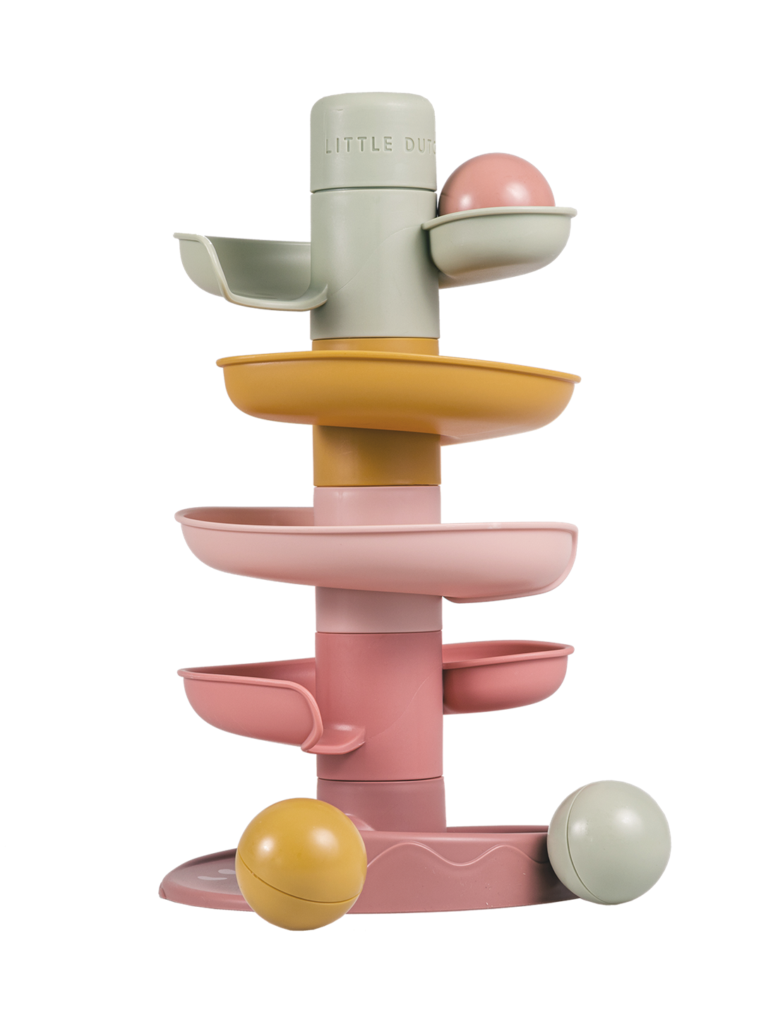 Just let the ball roll! Little Dutch’s spiral tower ensures endless fun. This colorful set consists of five subtly colored parts that your toddler can easily stack on top of each other.