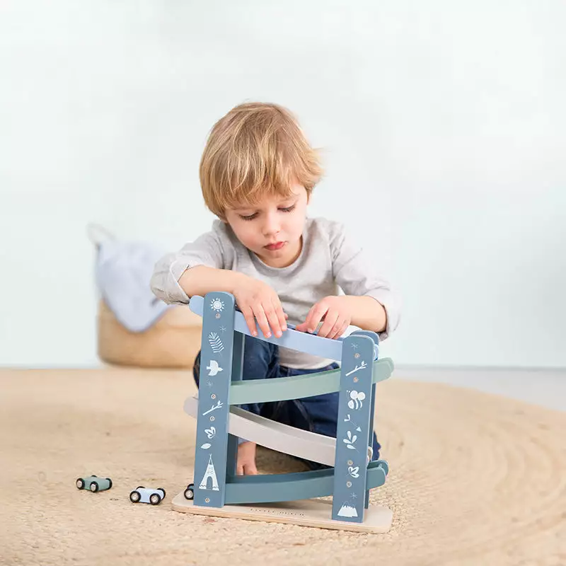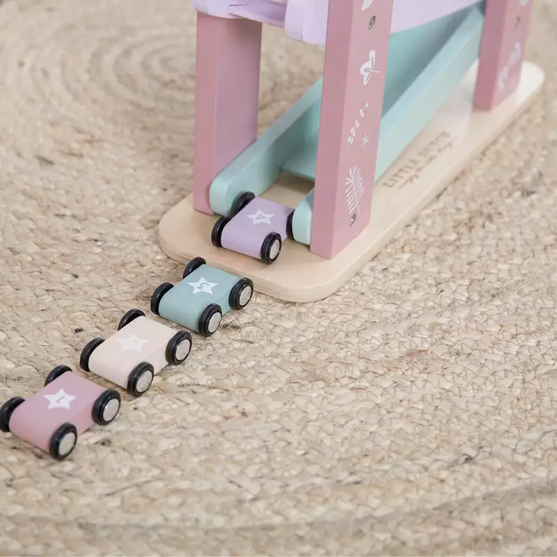 Hours of fun with this wooden Car Lane from Little Dutch! Put the cars one by one at the top of the motorway and let them race down! Which car is the fastest?
