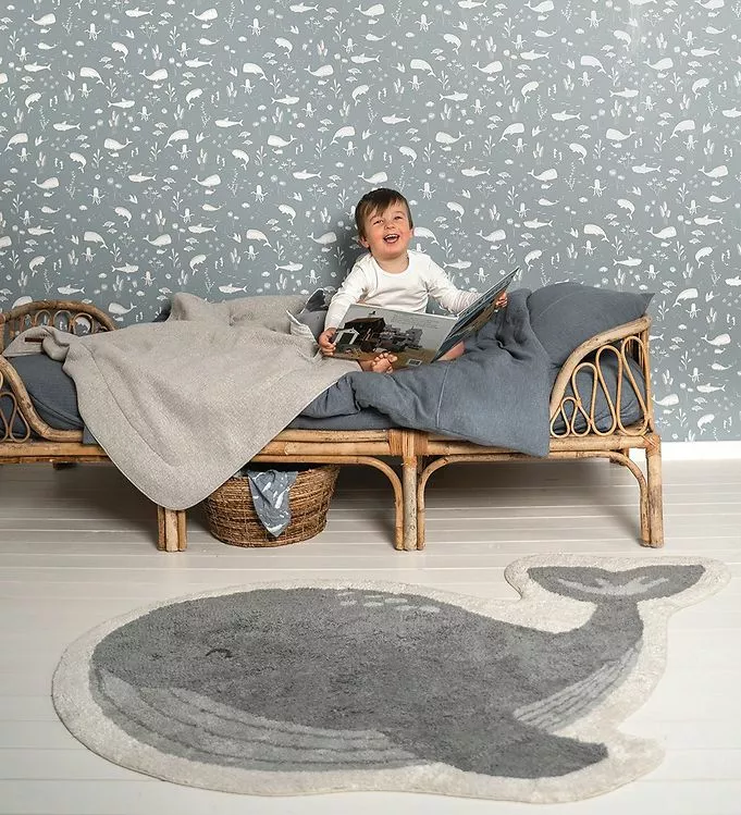 Bring a little animal fun to your child’s bedroom with this blue-toned rug. Shaped like a happy whale, it’s made for extra softness under little feet and toes.