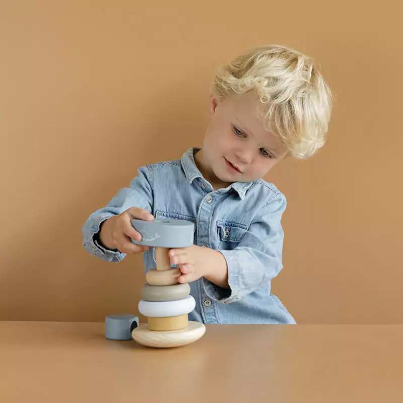 This playful wooden tumbler stacker for kids is designed to develop their hand-eye coordination through fun and hands-on play. Children are encouraged to place the wooden rings in the correct order and stack them on the pyramid. That’s quite a challenge, because the pyramid tumbles back and forth. Keep trying, you can do it!