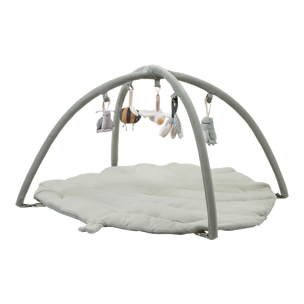 This soft, quilted activity play mat in the shape of a leaf is a great play area for babies. The cute little toys of Little Goose and his best friends on the arches encourage babies to touch and discover them. The toys are removable, so they can also be played with in the stroller.