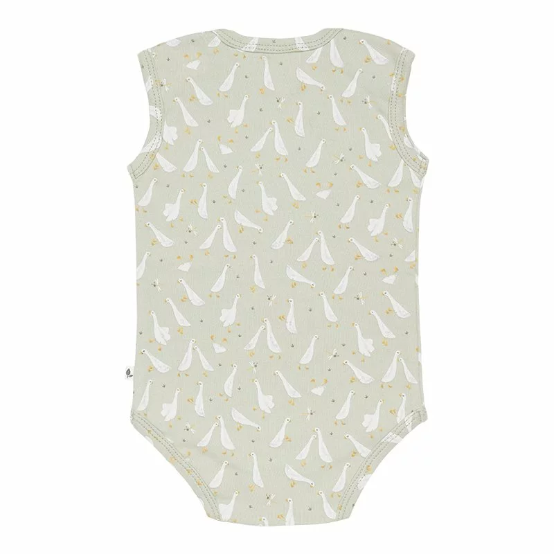 This pond-inspired bodysuit makes for a playful iteration of the classic style. Sprinkled throughout with walking and swimming geese, it adds a fun twist to your baby’s day-to-day rotation. This body is cut from certified organic cotton to a sleeveless silhouette with a crotch opening and snap buttons.
